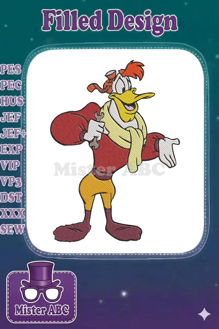 Action Cartoon Duck Mechanic Pilot Scarf Wrench Embroidery Designs