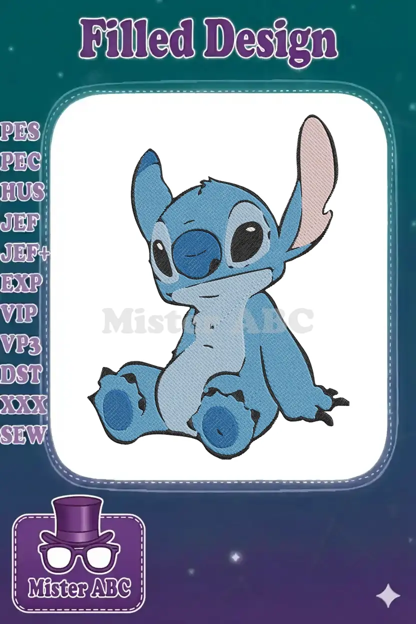 Adorable blue Stitch sitting alien cartoon embroidery designs – Instant Download