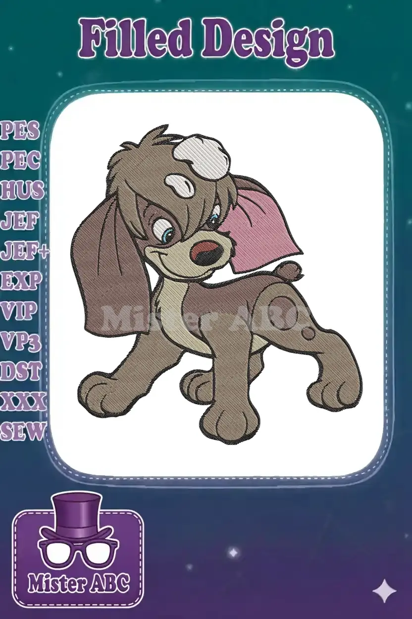 Capture the heartwarming spirit of young Copper from Disney’s The Fox and the Hound with this charming embroidery design. Perfect for fans!