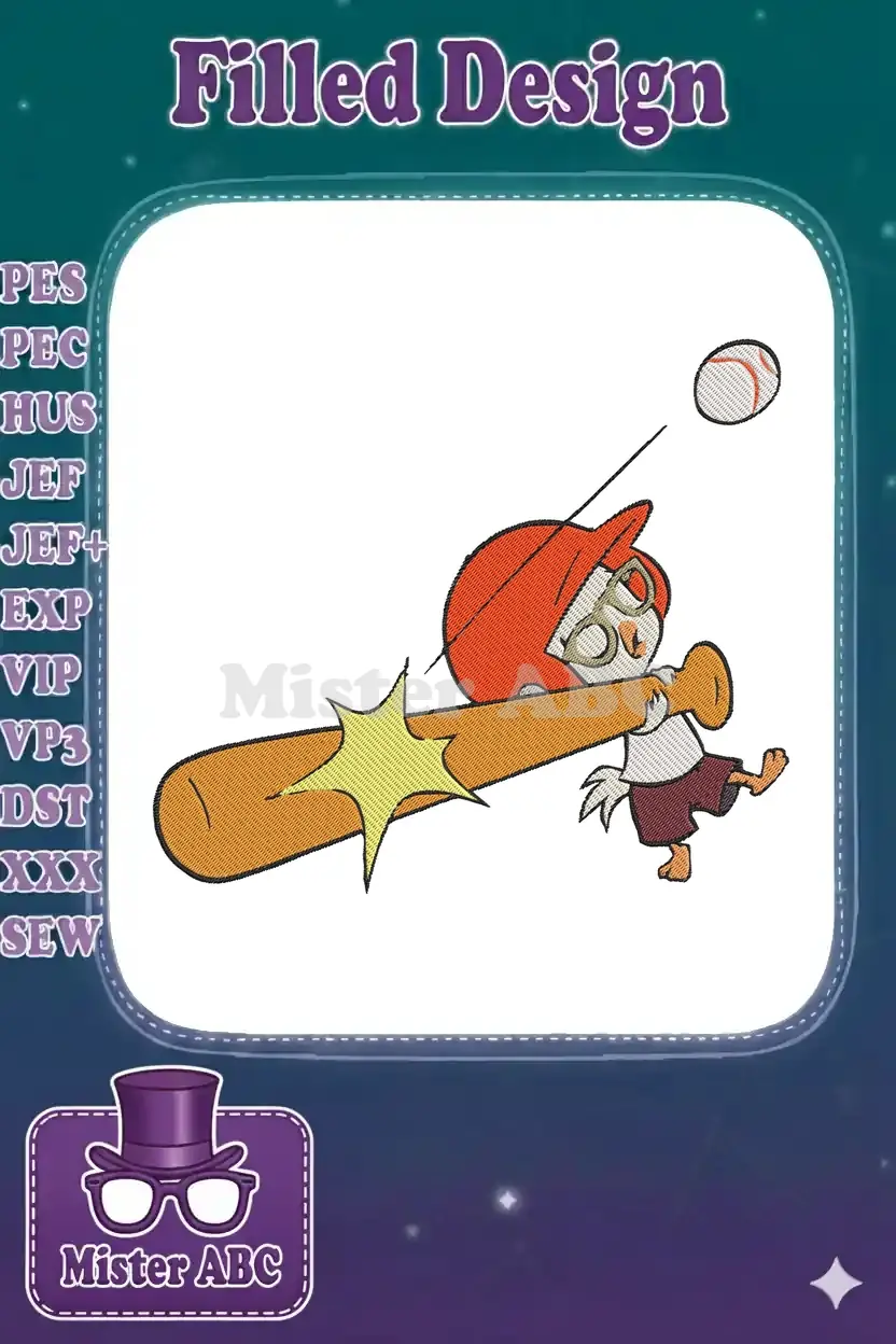 Adorable cartoon bird baseball player with bat embroidery designs