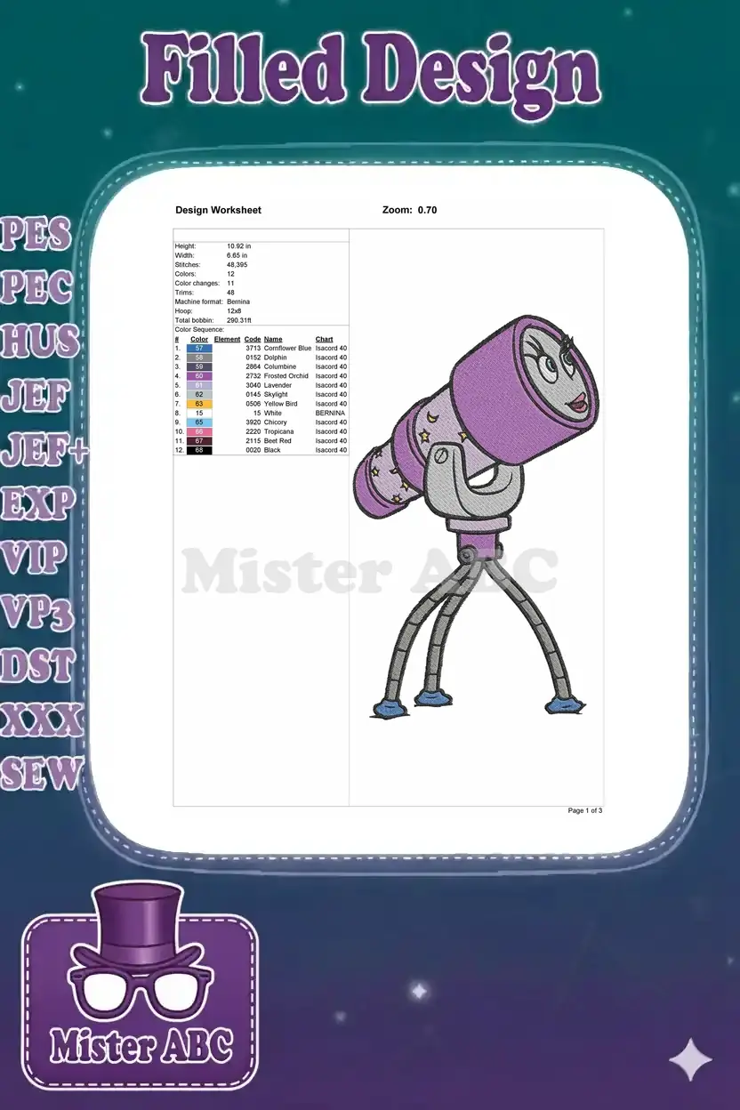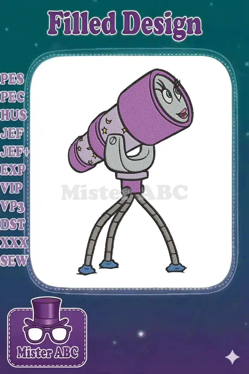 Adorable cartoon purple telescope with starry patterns embroidery designs