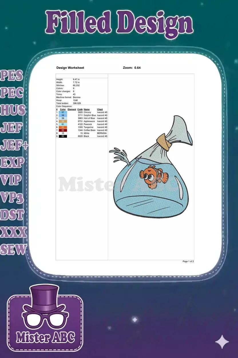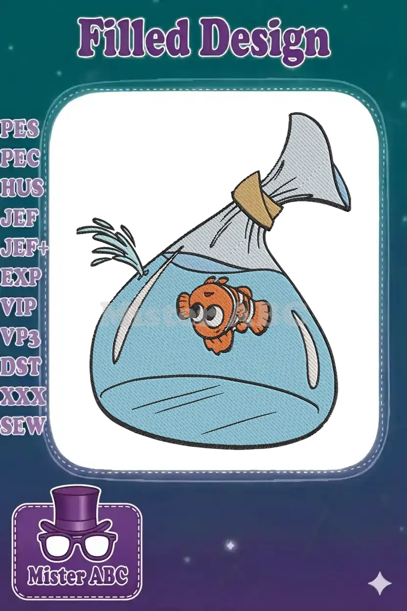 Adorable Clownfish Nemo Trapped in Water Bag Embroidery Designs