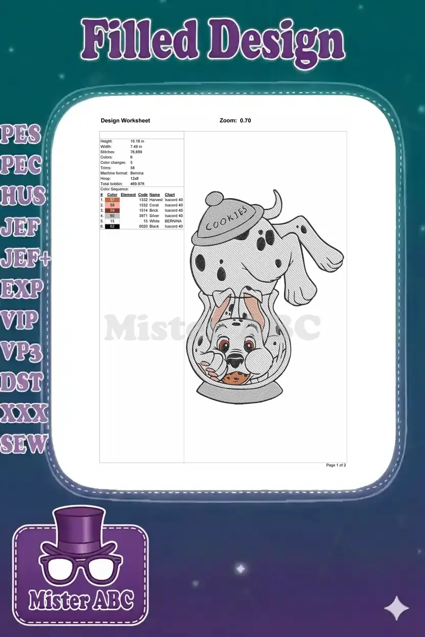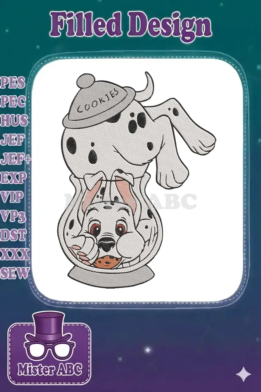 Adorable Dalmatian puppy in cookie jar with smiling dog embroidery designs