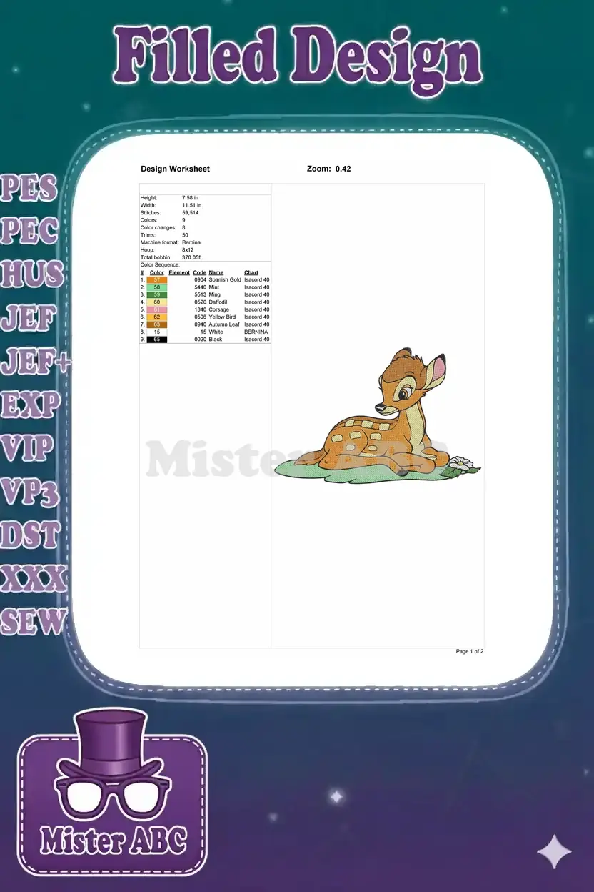 Adorable fawn resting on green grass with white flower embroidery designs