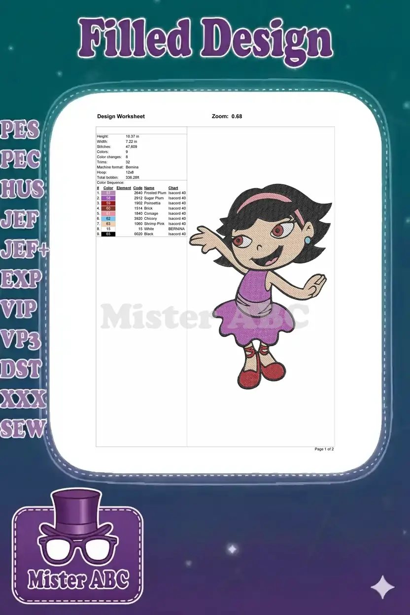 Adorable June Little Einsteins ballet dancer purple dress embroidery designs