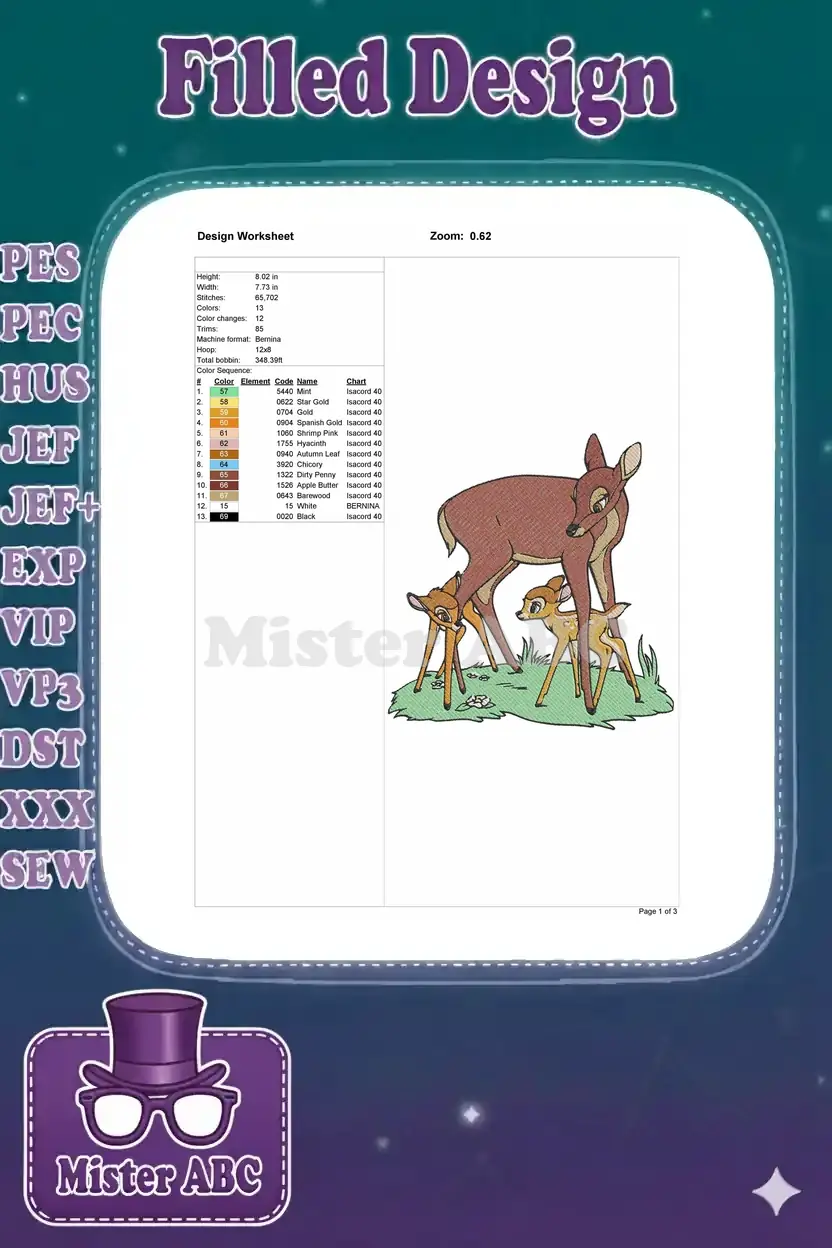 Adorable mother deer with two baby fawns embroidery designs - Instant Download Adorable mother deer with two baby fawns embroidery designs – Instant Download