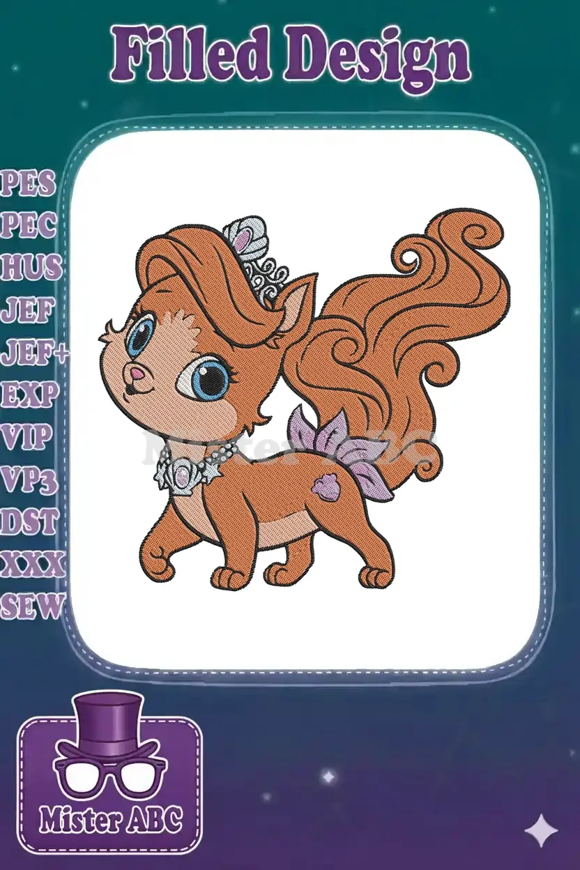 Adorable Orange Royal Squirrel Princess with Tiara Embroidery Designs