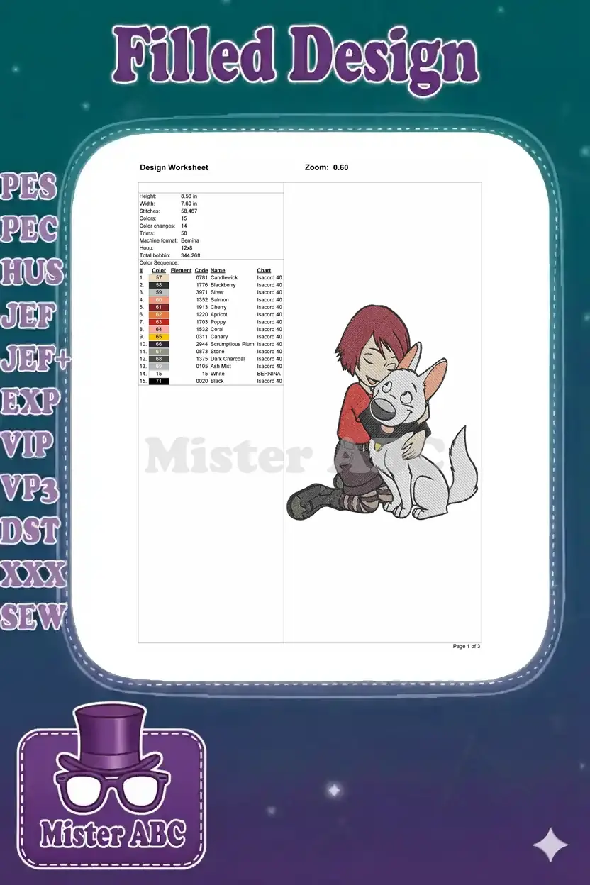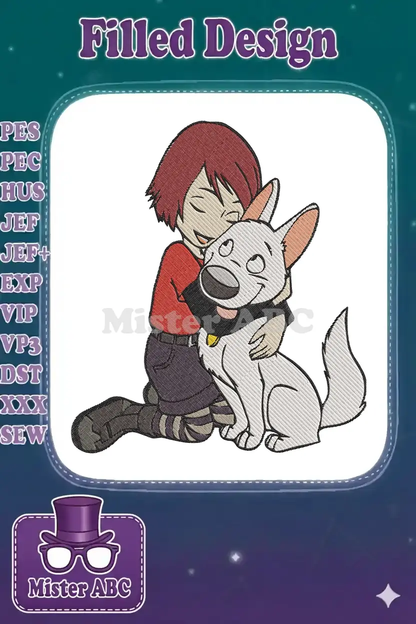 Adorable Penny and Bolt Hugging Friendship Cartoon Embroidery Designs