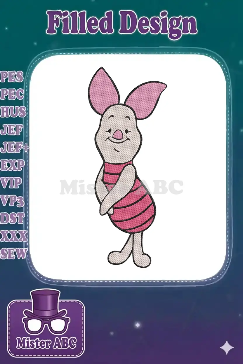 Adorable Piglet smiling in striped shirt Winnie Pooh embroidery designs