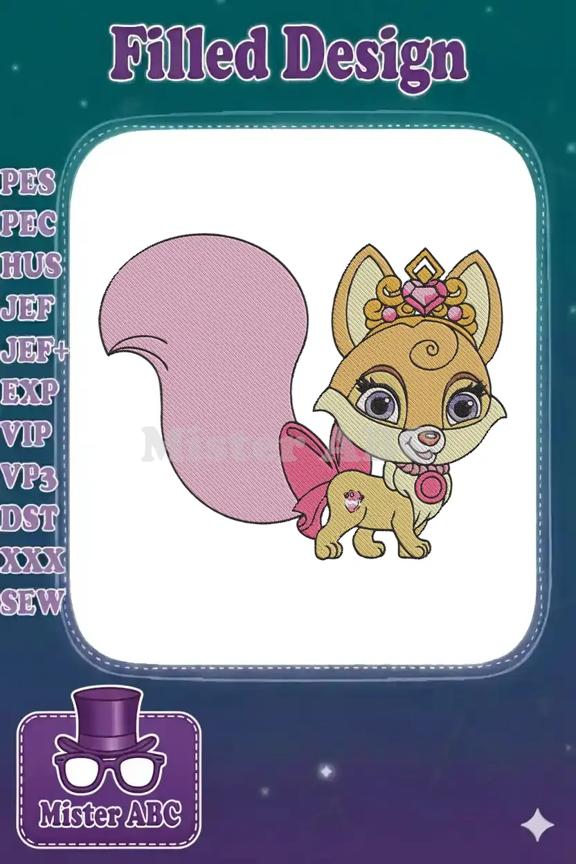 Adorable Princess Squirrel Pink Bow Crown Embroidery Designs
