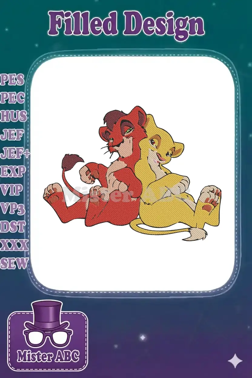 Adorable red and yellow cartoon lion cubs friendship embroidery designs