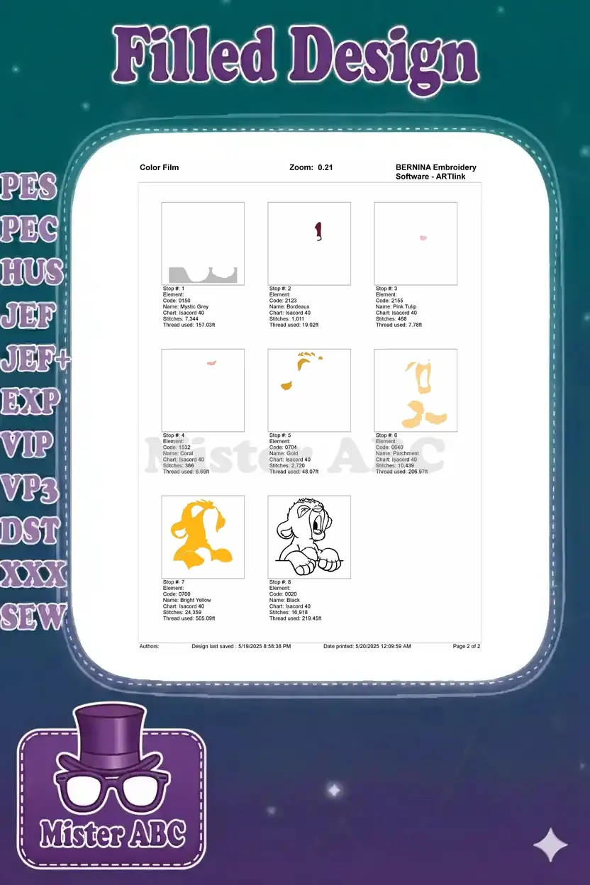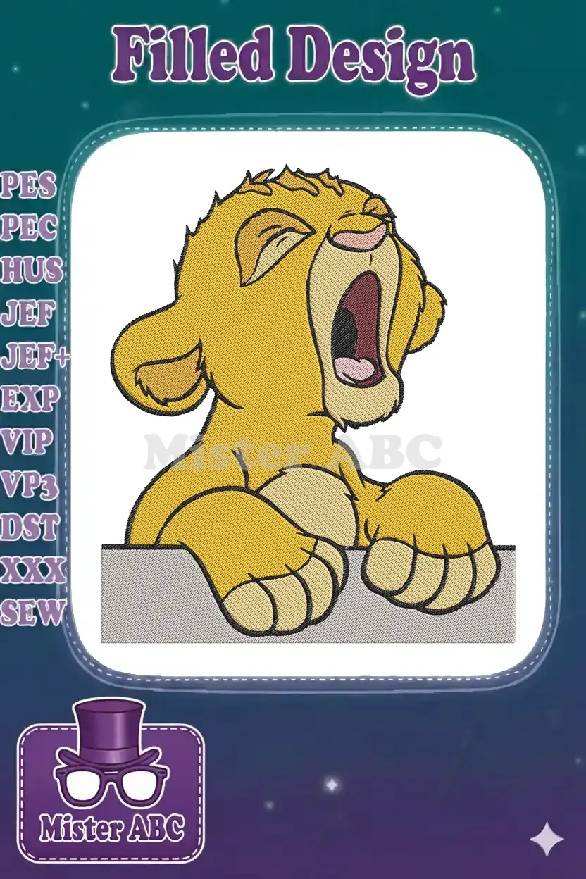 Adorable Simba Yawning Lion Cub Character Embroidery Designs