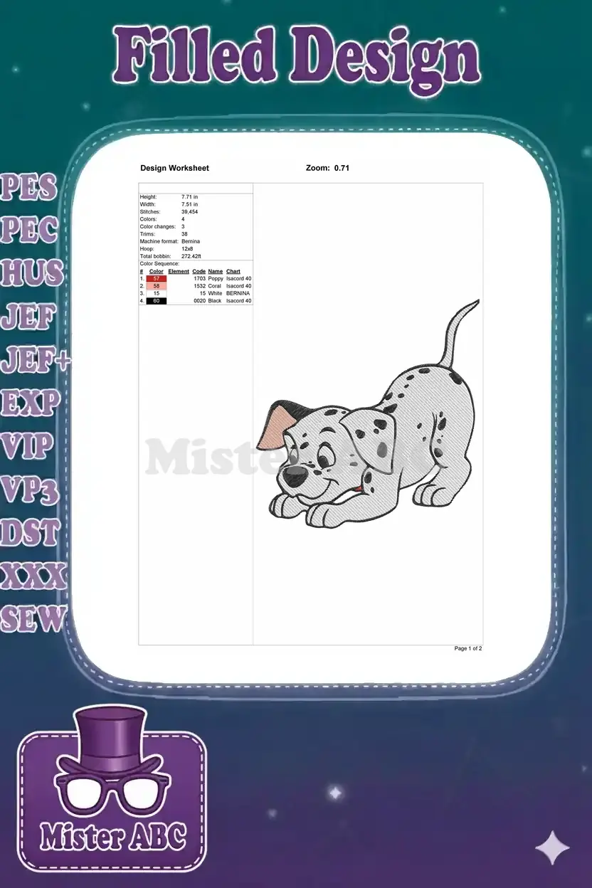 Adorable spotted Dalmatian puppy pouncing pose embroidery designs