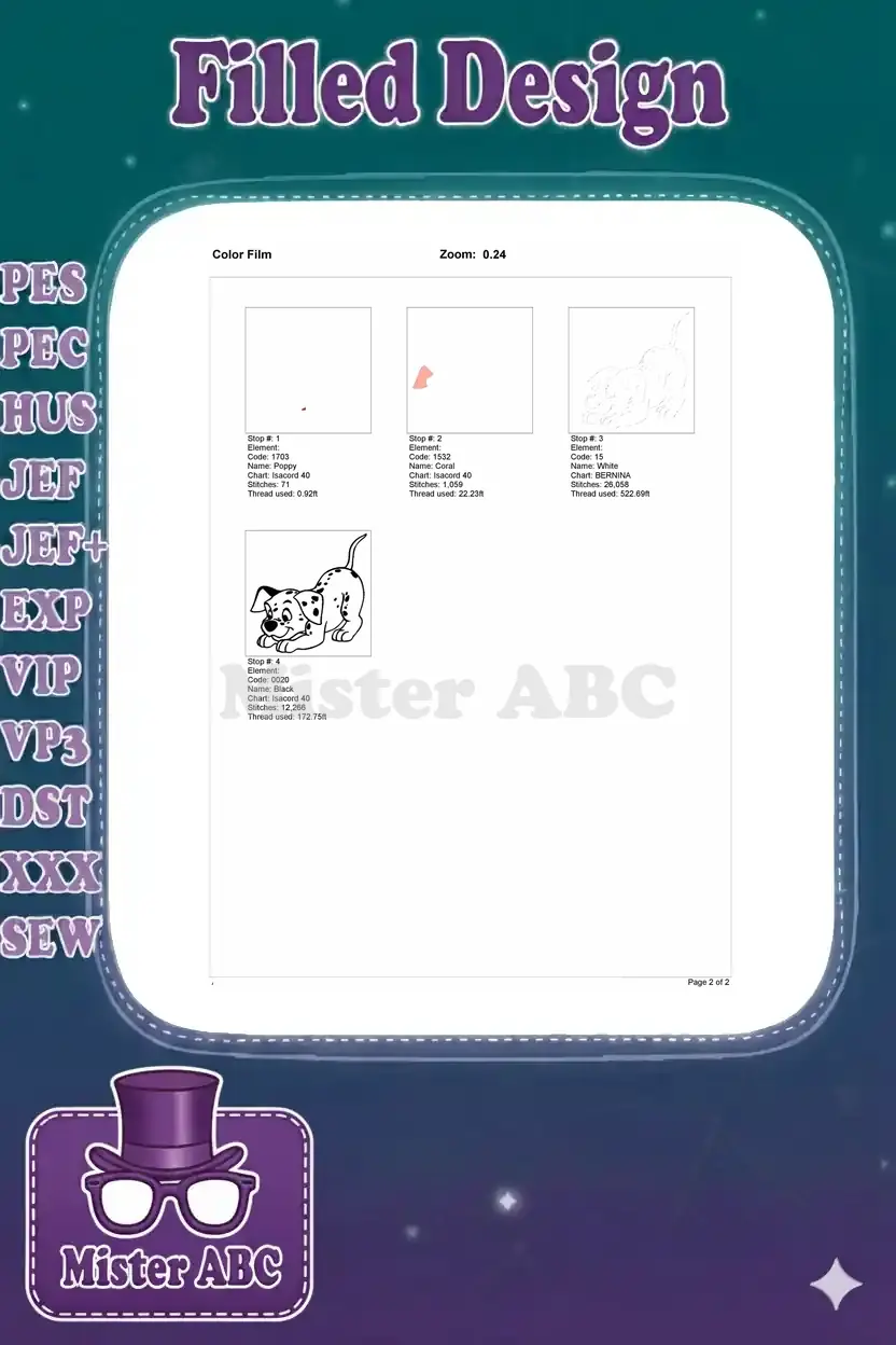 | Stitches | Colors | Thread Changes |
