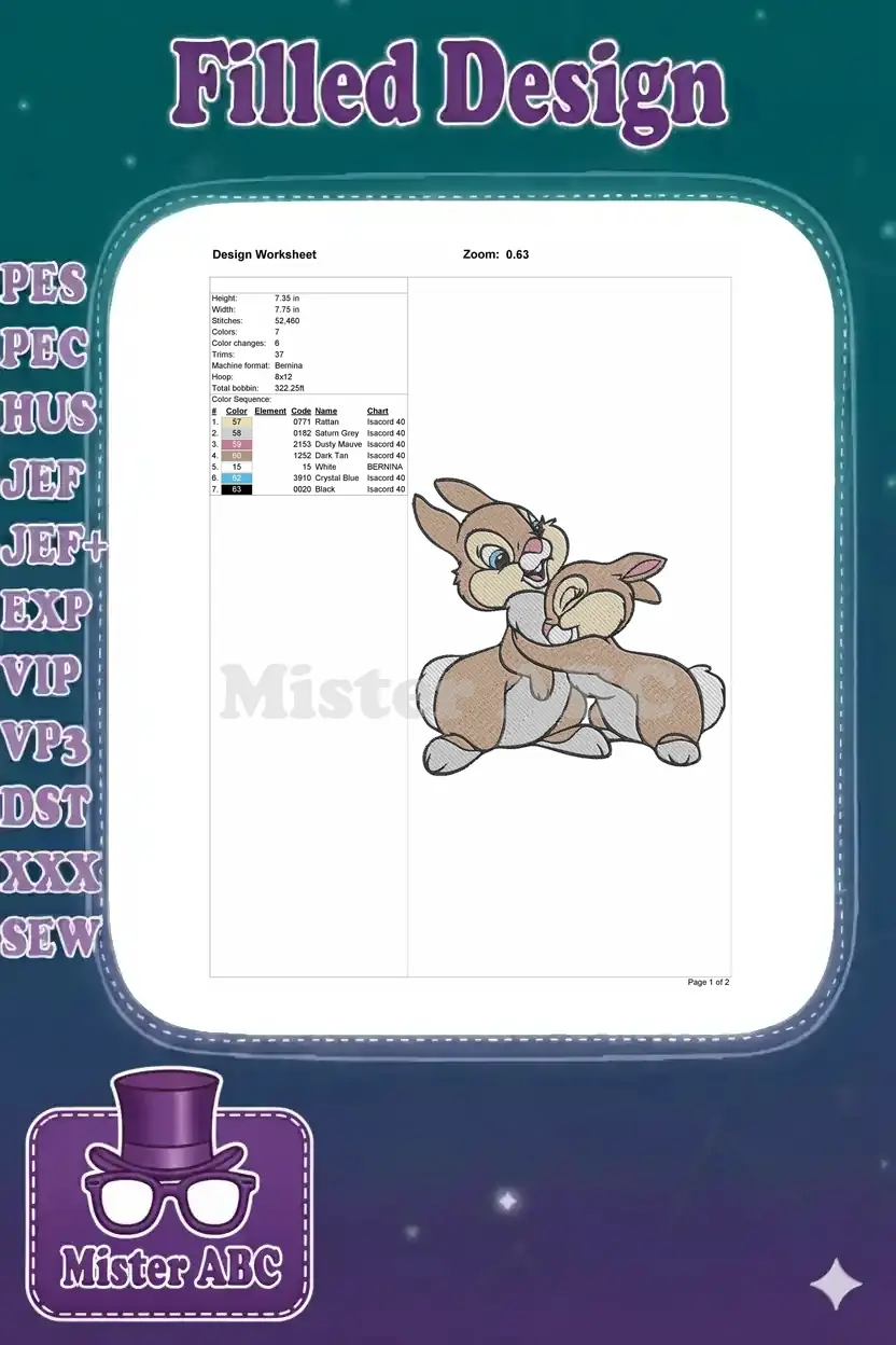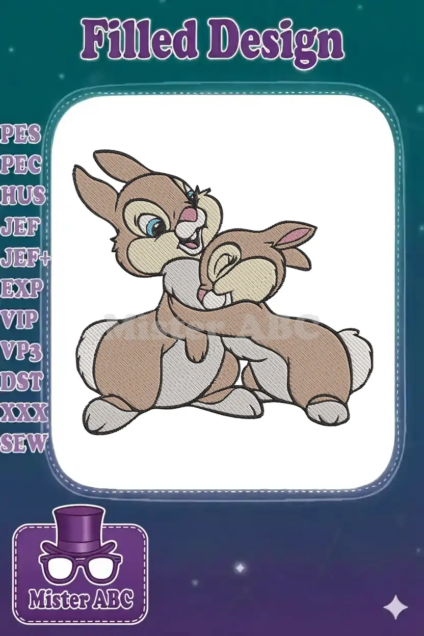 Adorable Thumper and Bunny Sibling Hugging Digital Embroidery Designs