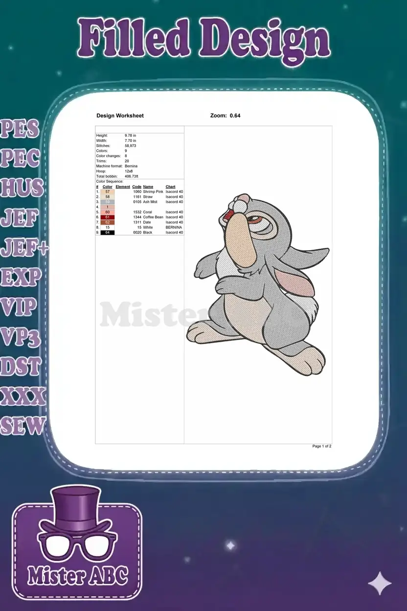 Adorable Thumper gray bunny looking up embroidery designs
