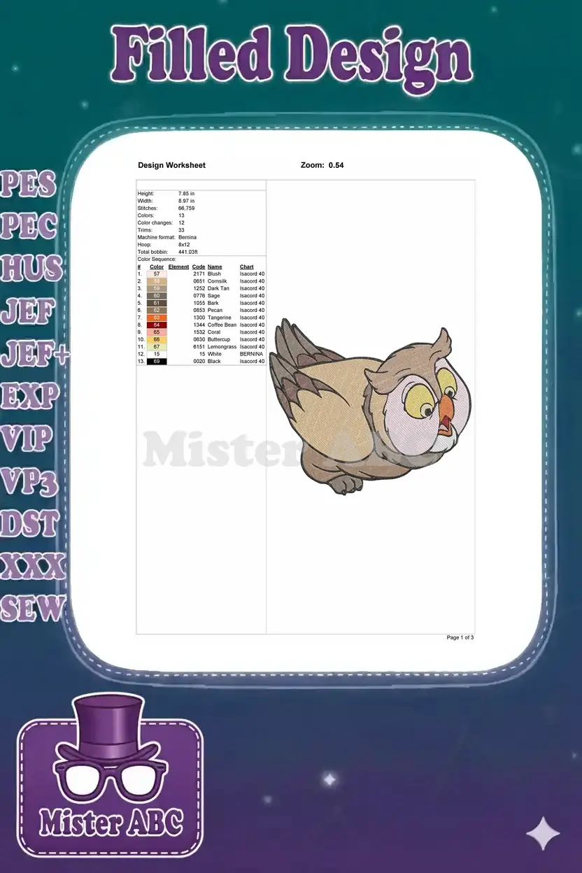 Adorable wide-eyed cartoon brown owl forest animal embroidery designs