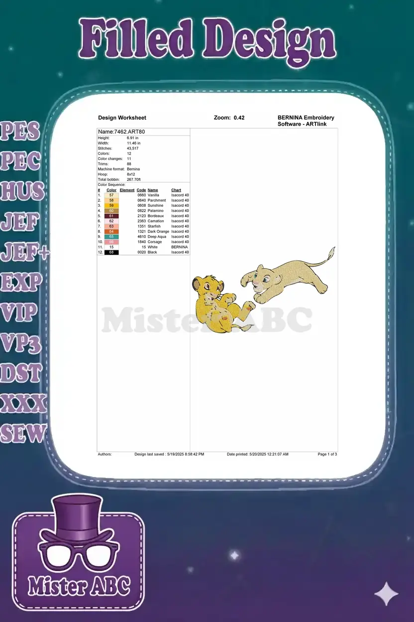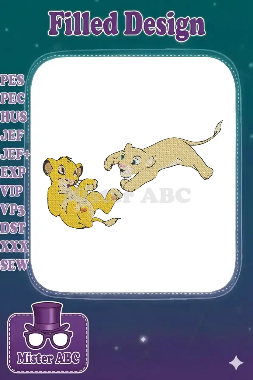 Adorable young lion cubs playing pouncing machine embroidery designs