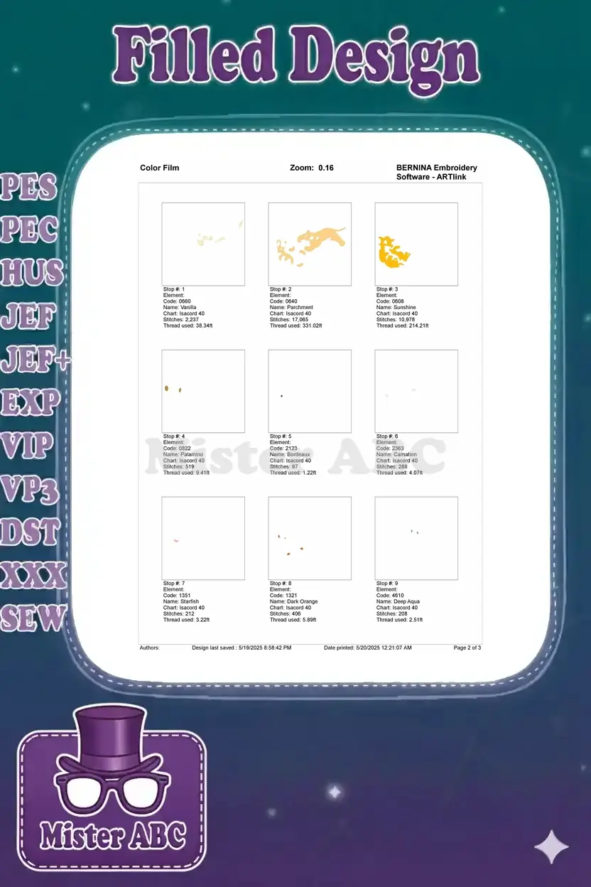| Stitches | Colors | Thread Changes |