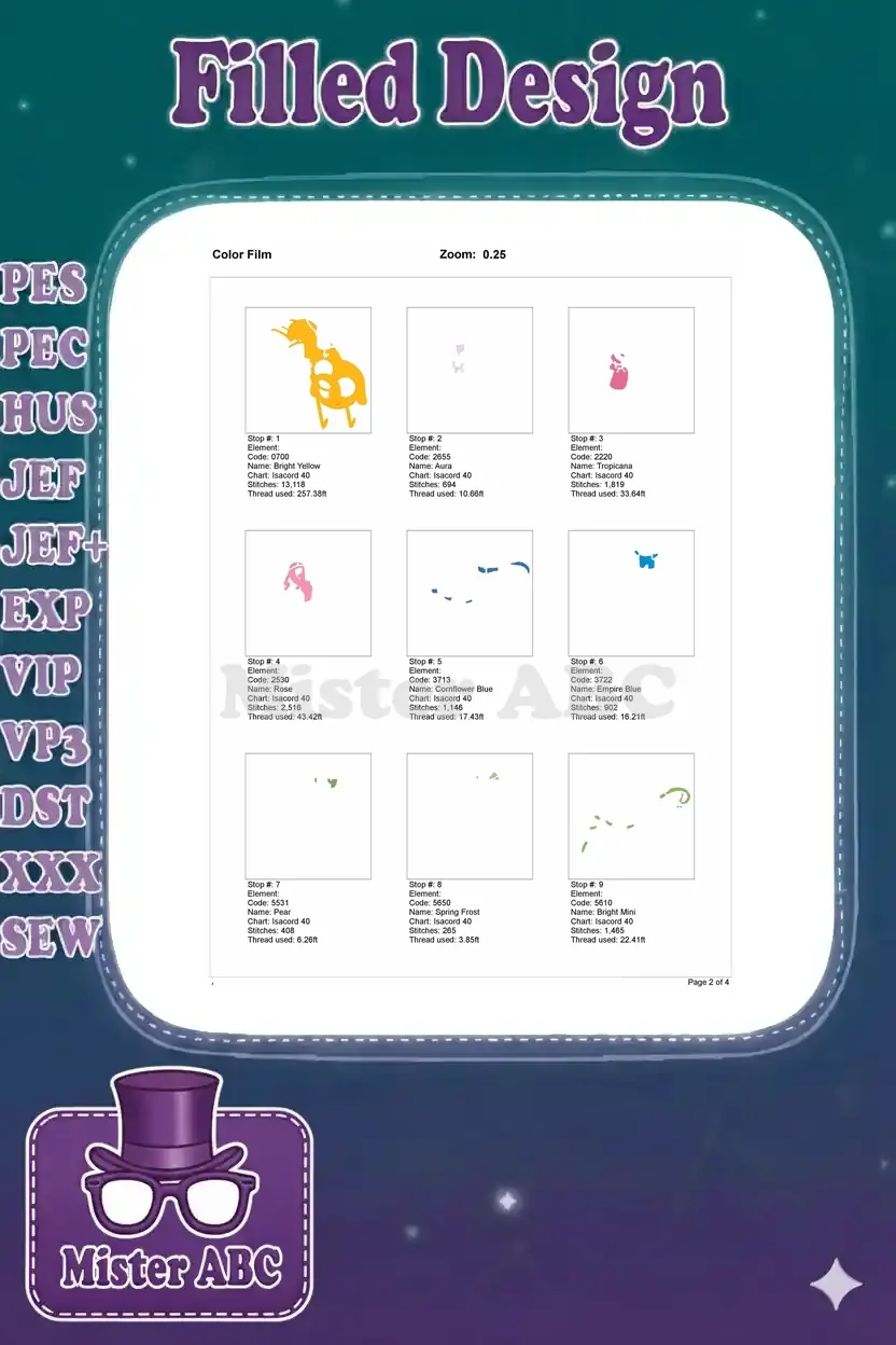 | Stitches | Colors | Thread Changes |