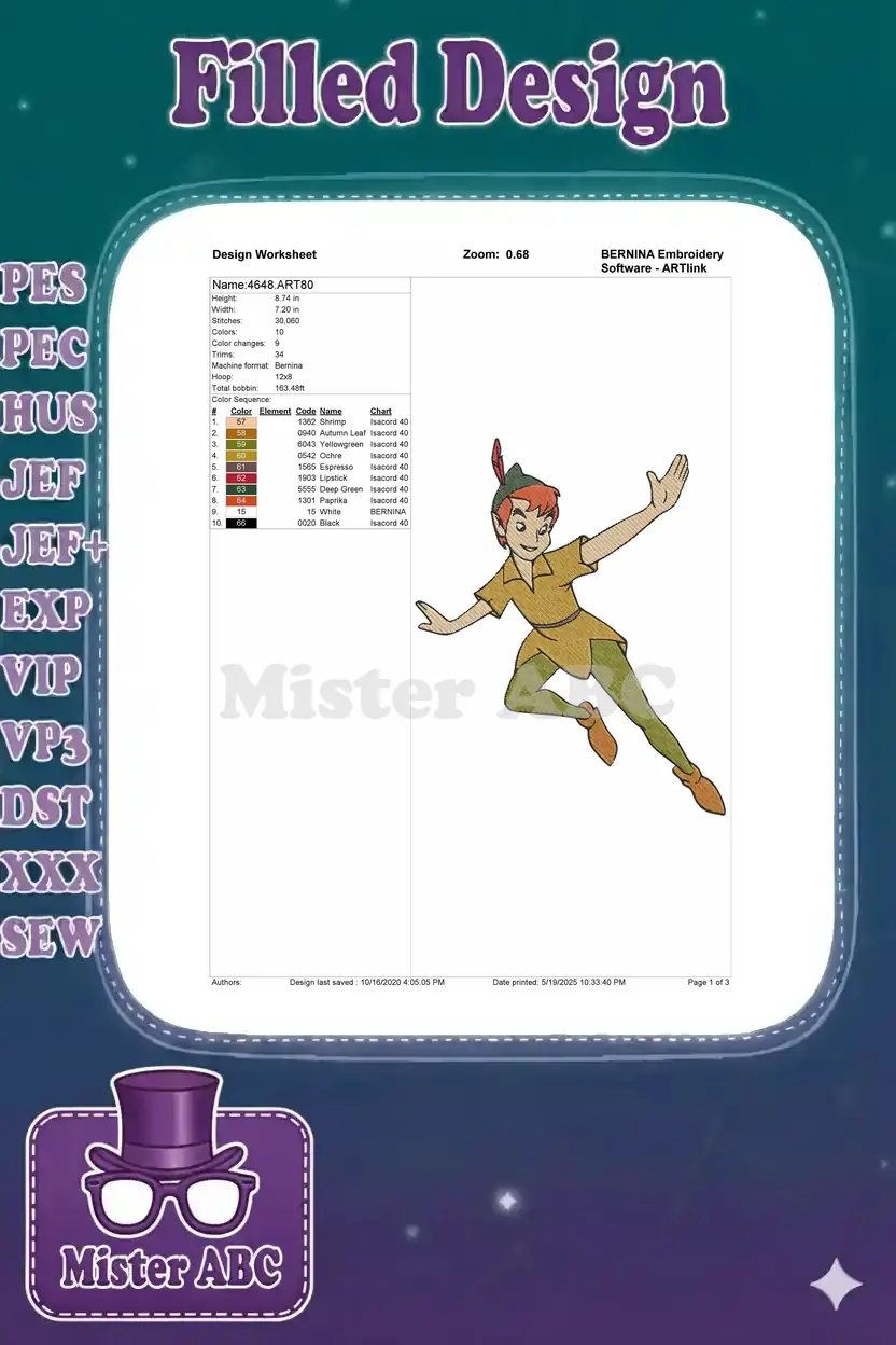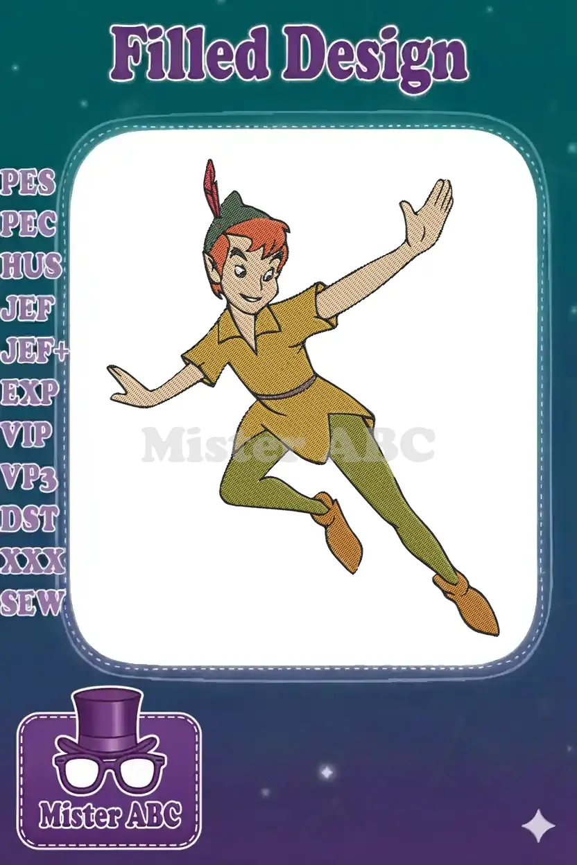 Adventurous Peter Pan flying cartoon embroidery designs for children