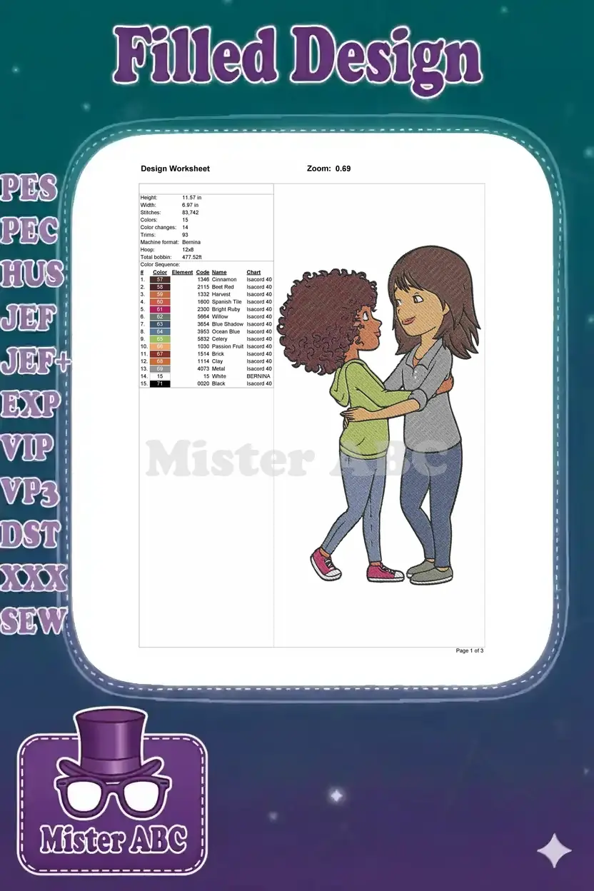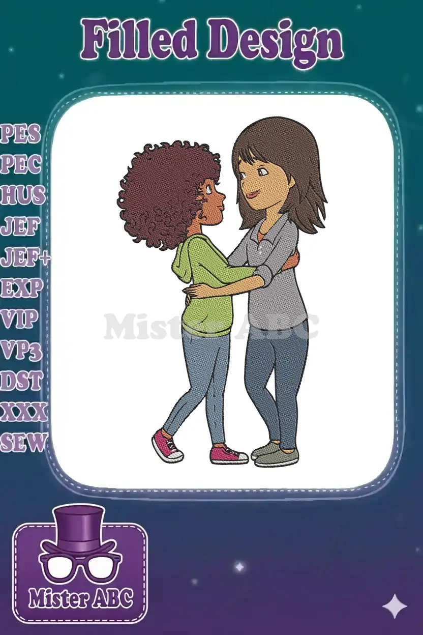 Affectionate hug two diverse young women friendship embroidery designs