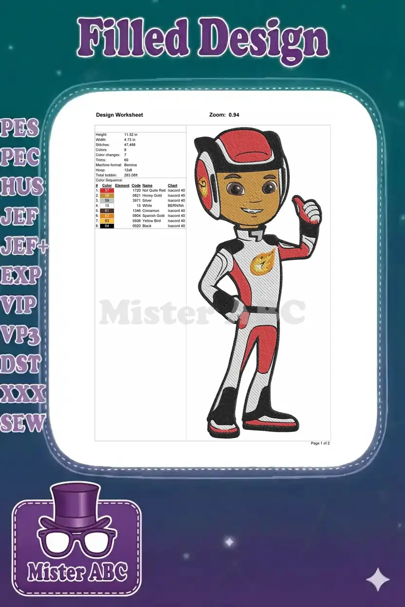Bring AJ from Blaze to life with this vibrant embroidery design! Perfect for fans, adding a dynamic touch to any item.