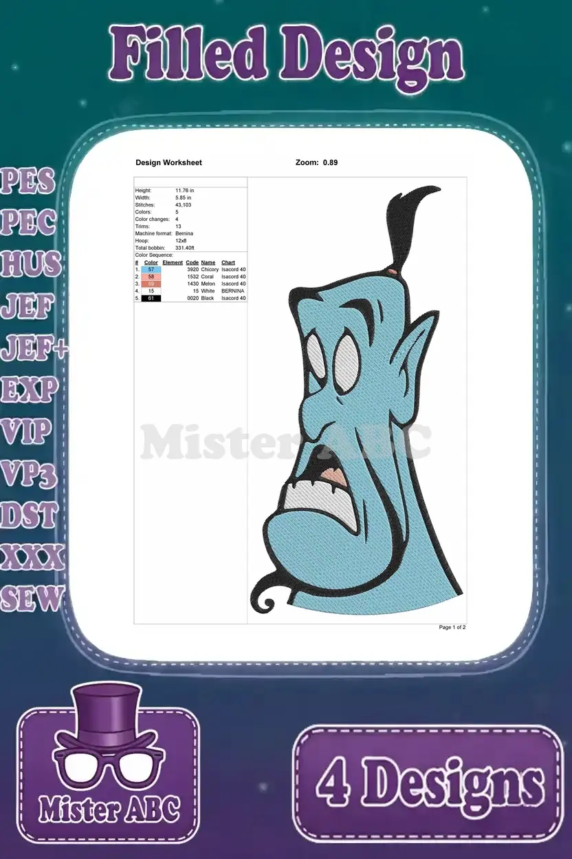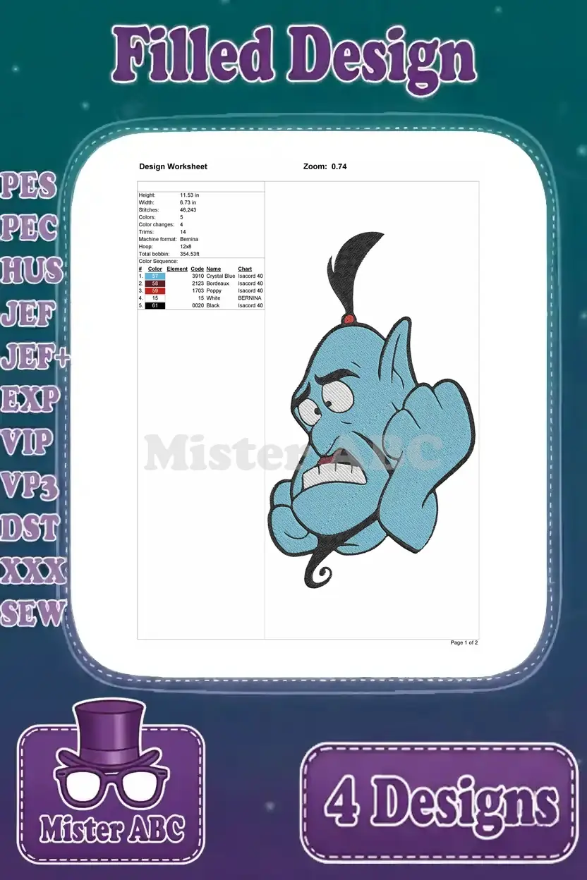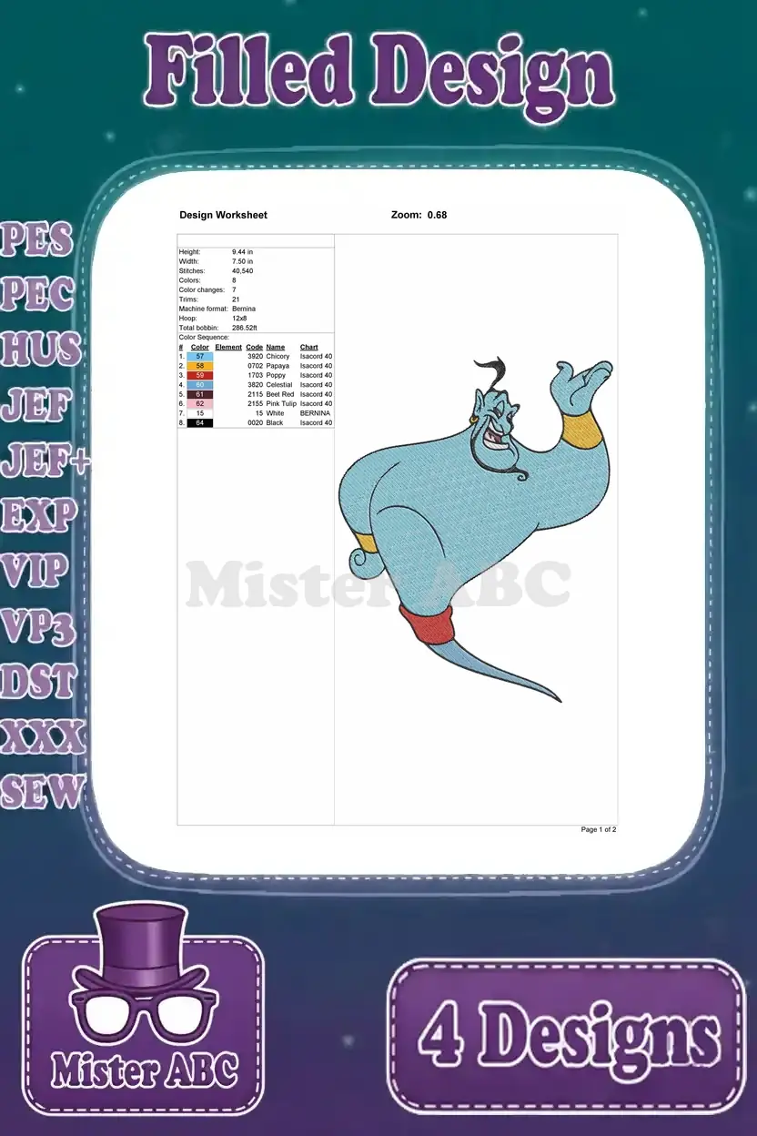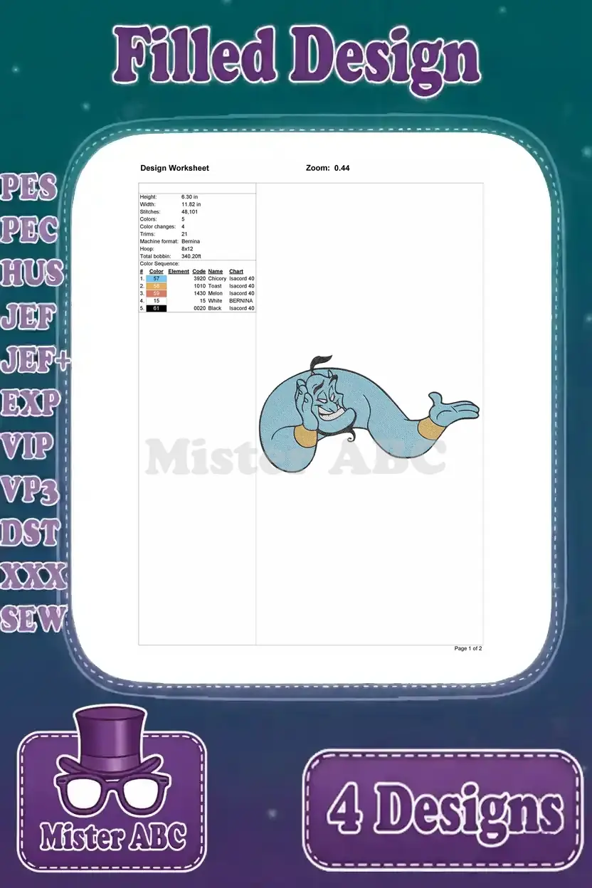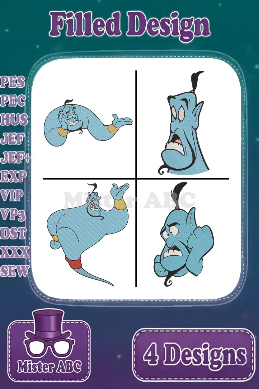 Aladdin Genie Of The Lamp Various Transformations And Funny Expressions Clip – Filled Embroidery Design