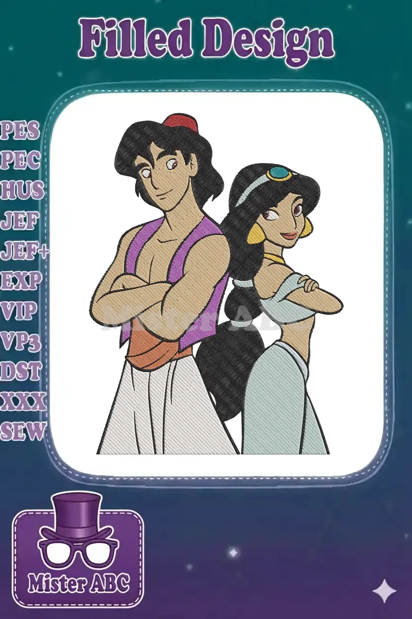 Aladdin and Jasmine Disney Animated Movie Characters Embroidery Designs