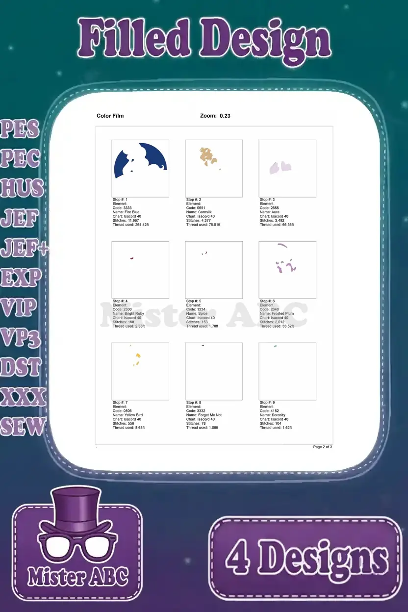 | Stitches | Colors | Thread Changes |