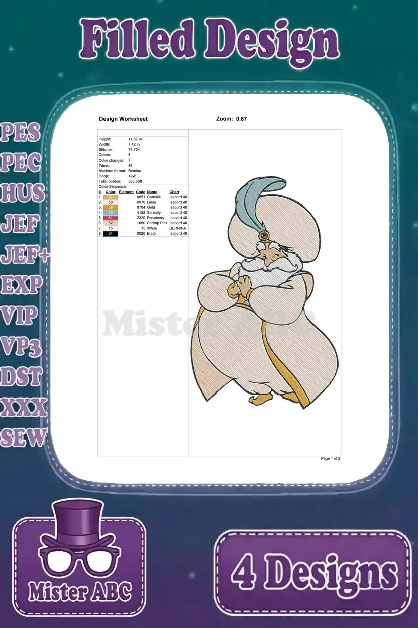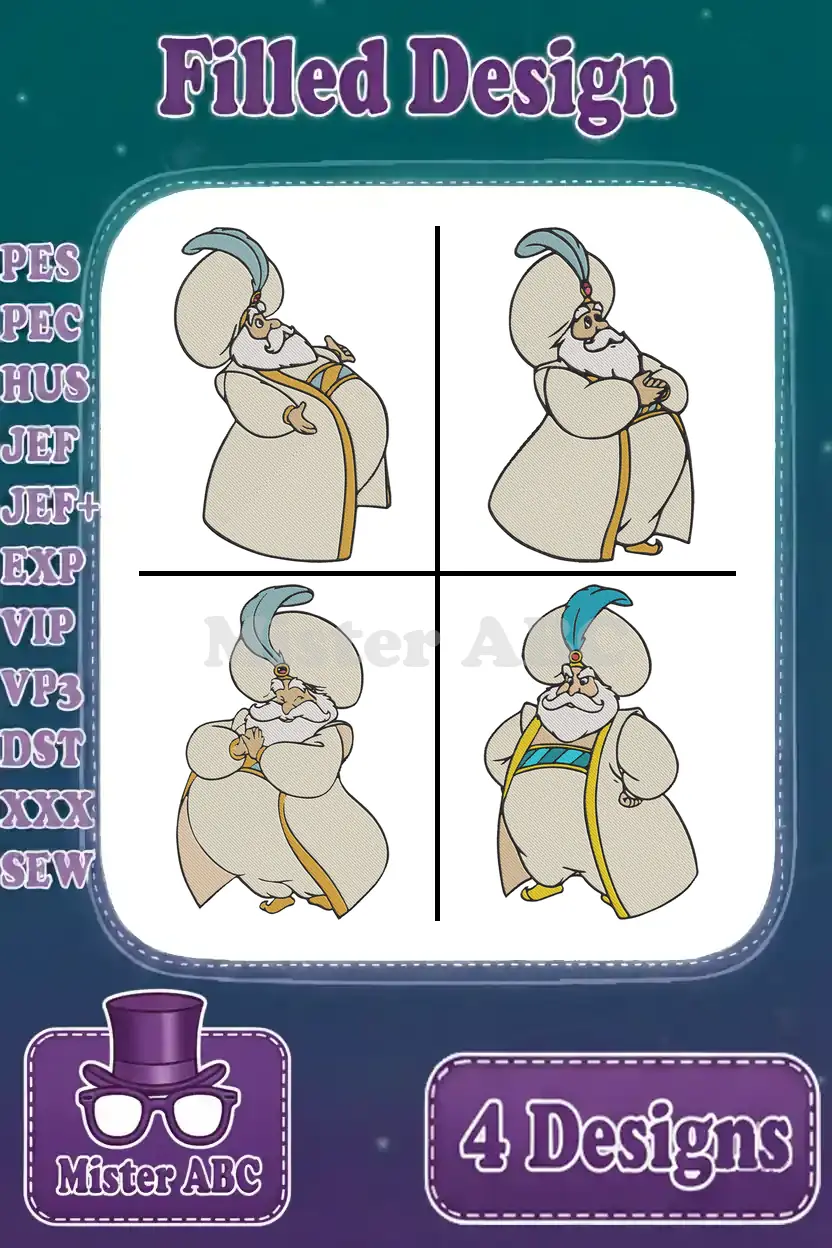 Aladdin Sultan Father Of Jasmine Various Classic Poses And Expressions – Filled Embroidery Design