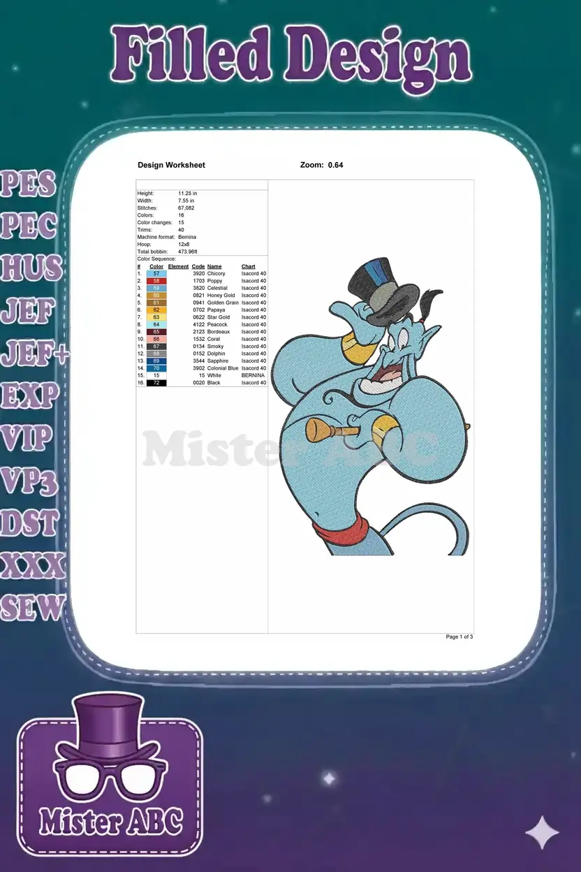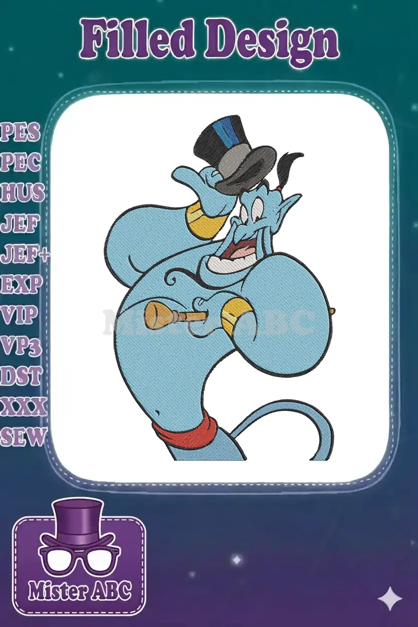 Aladdin’s Blue Genie Tipping Hat with Golden Horn Embroidery Designs