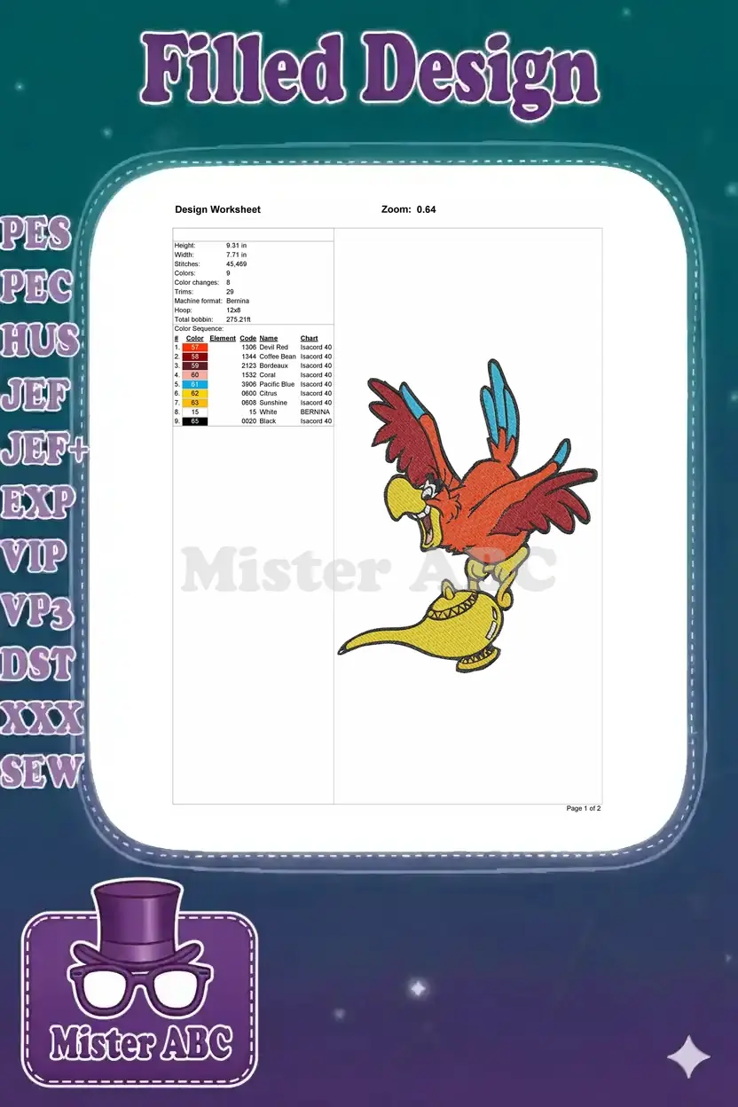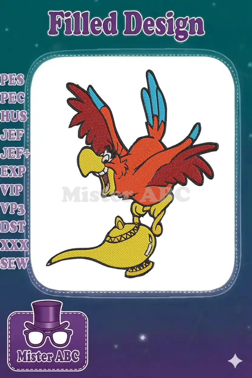 Aladdin’s Iago Red Parrot on Magic Lamp Embroidery Designs