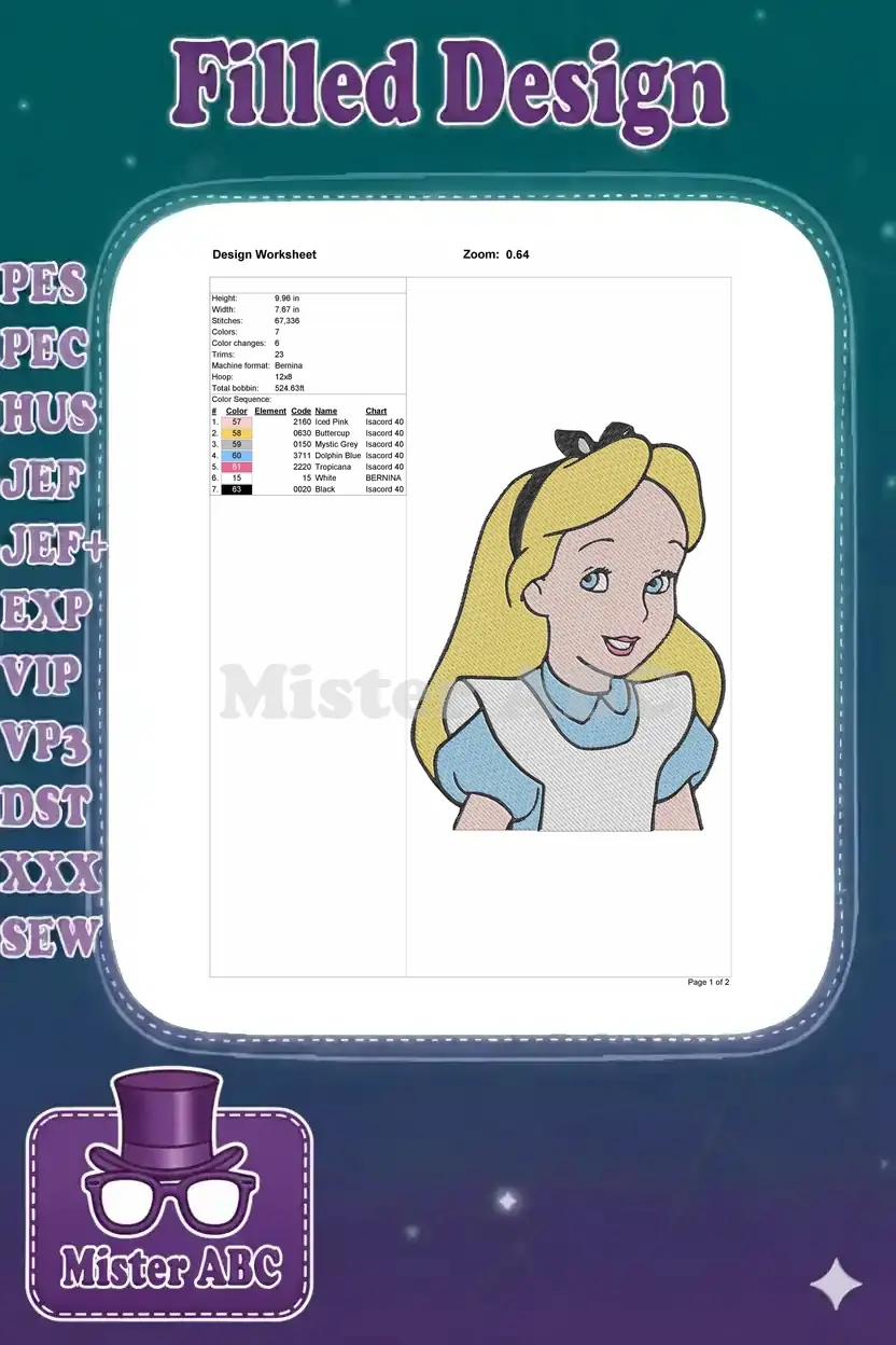Alice in Wonderland blonde girl with blue dress embroidery designs