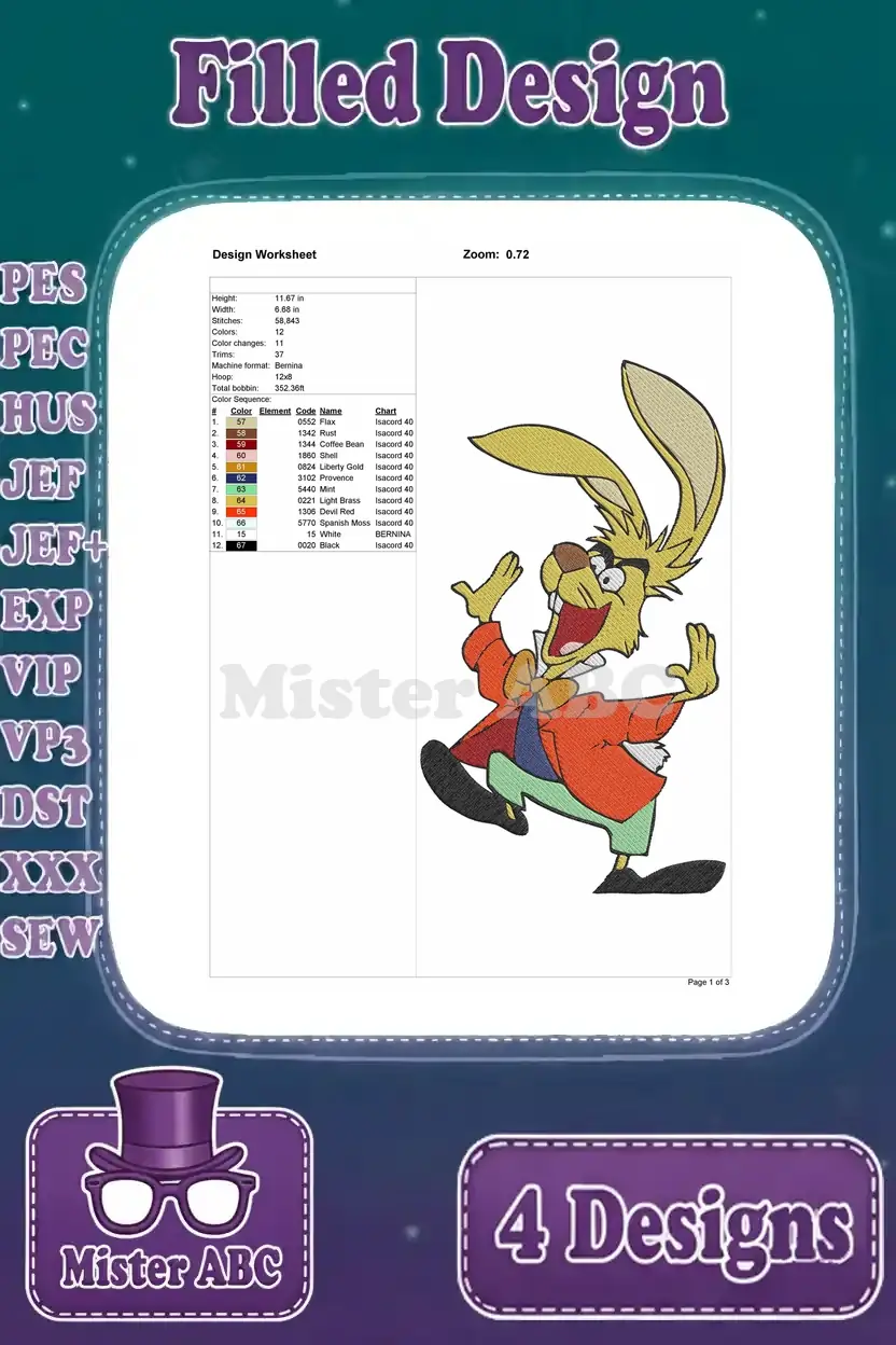 Alice In Wonderland March Hare And Dormouse At The Mad Tea Py Characters – Filled Embroidery Design