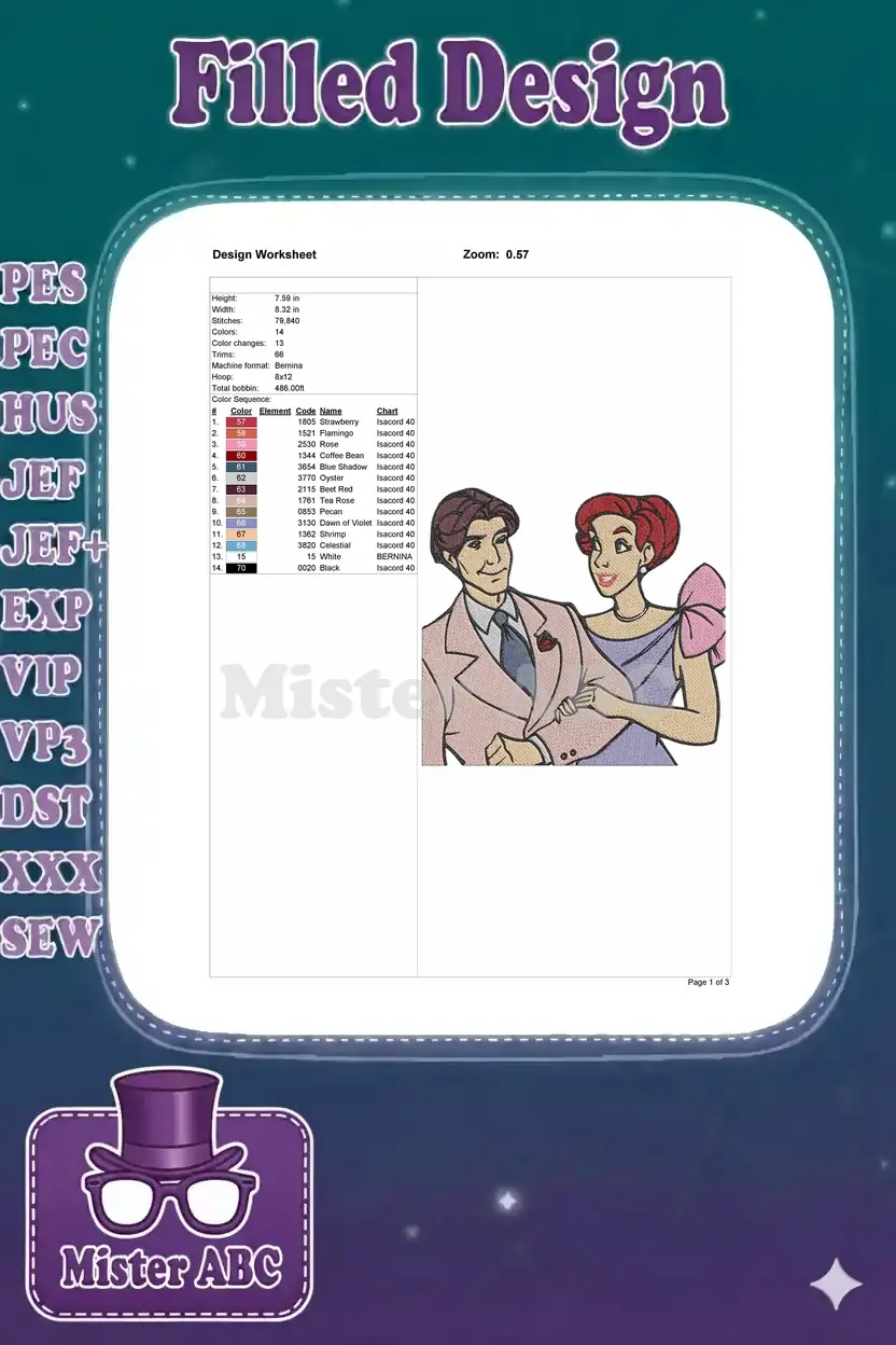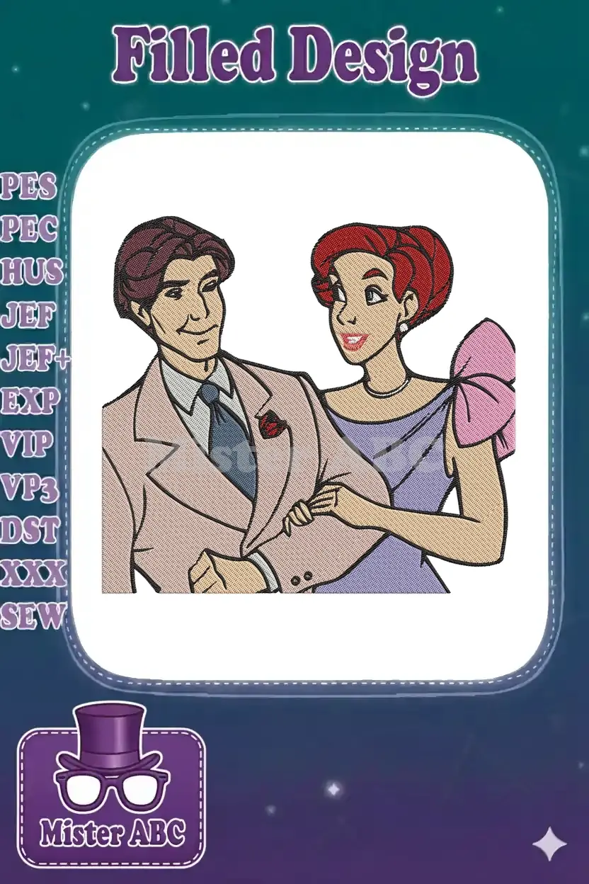 Embrace the romance of a beloved animated classic with this exquisite embroidery design featuring a charming couple. Perfect for fans!