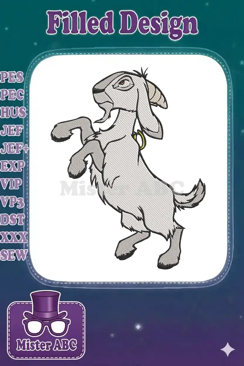 Angry Cartoon Goat Standing Embroidery Designs for Farm Animal Projects