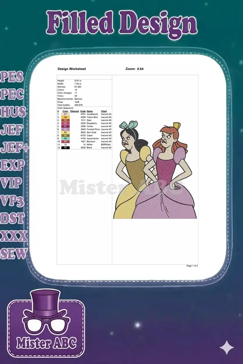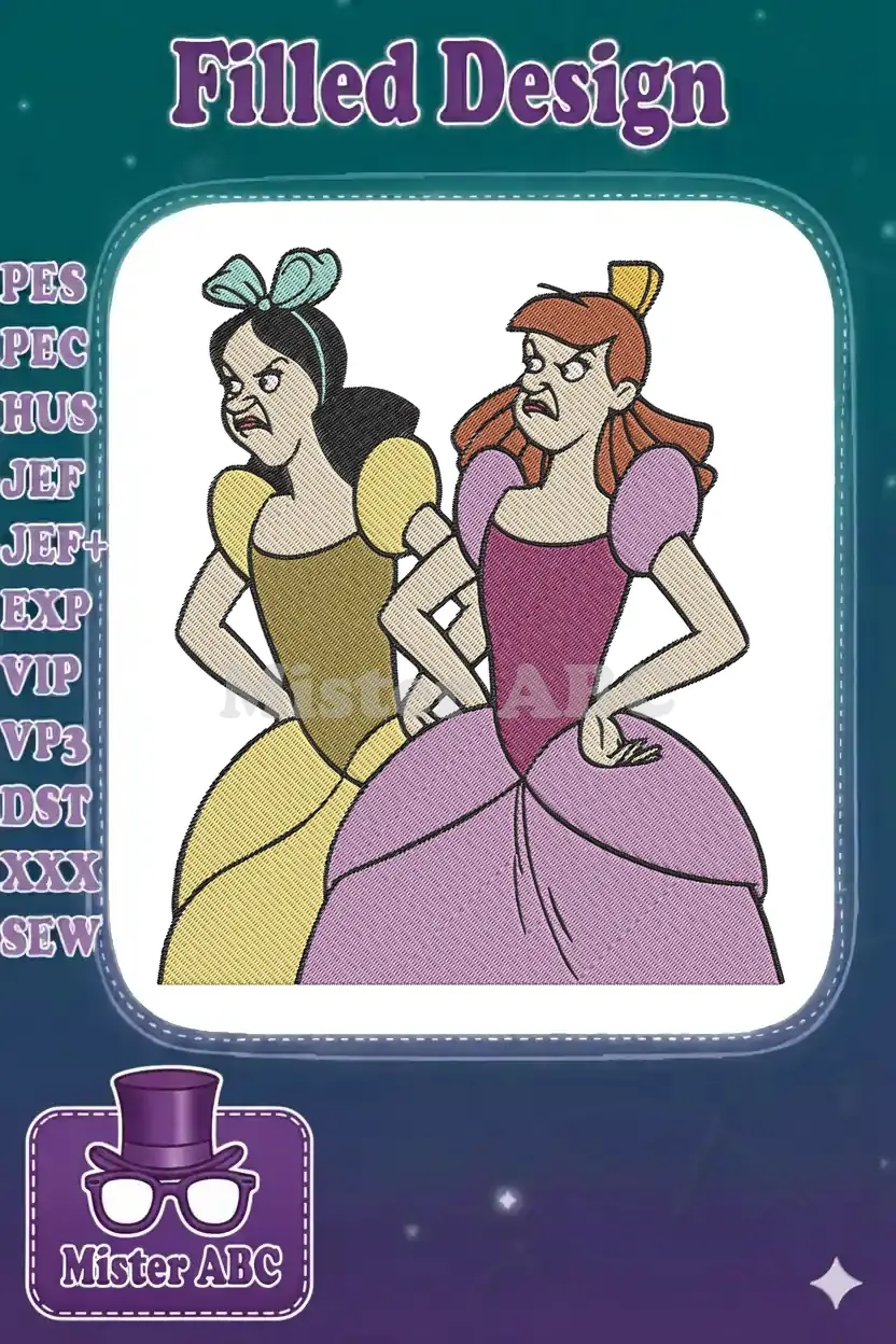 Angry Cinderella Stepsisters Embroidery Designs – Mean Fairytale Characters