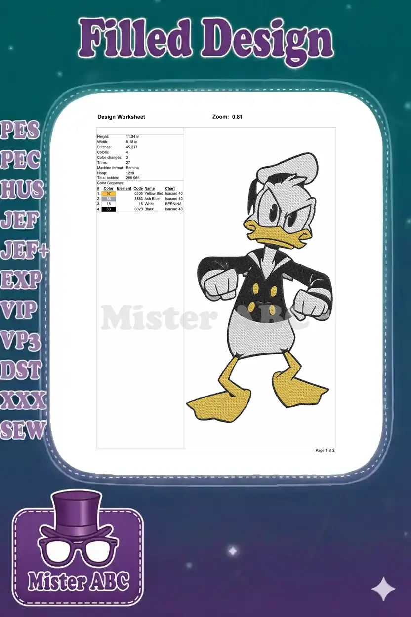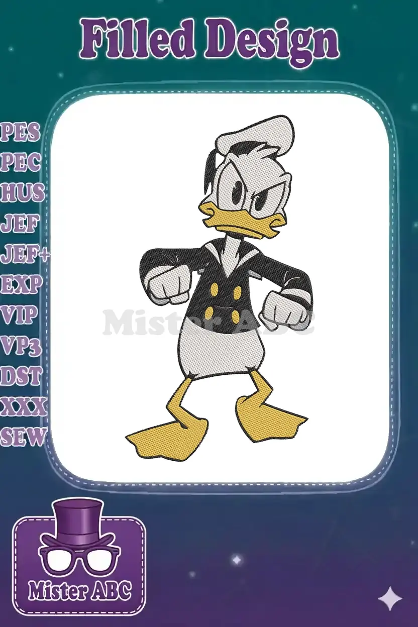 Angry Donald Duck Classic Cartoon Character Embroidery Designs