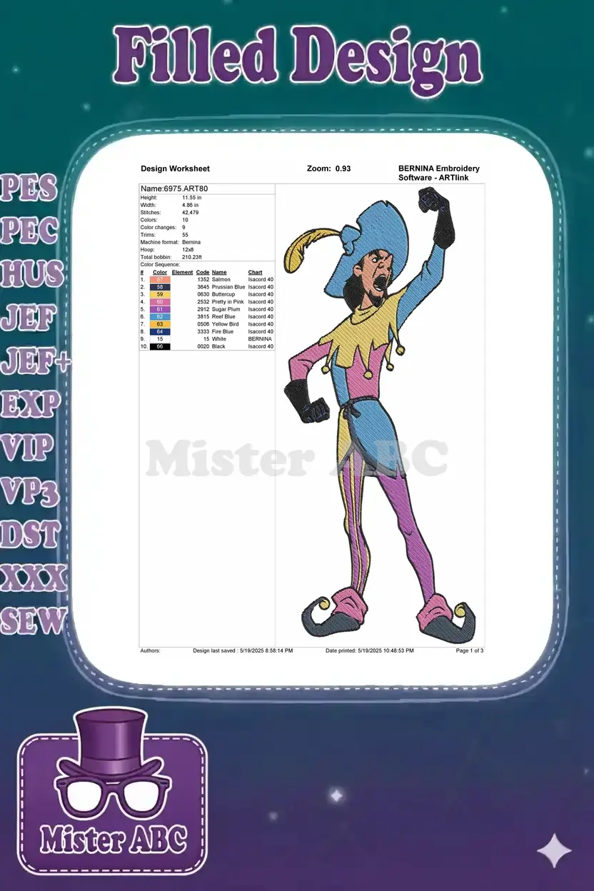Angry Jester Colorful Costume Medieval Fantasy Embroidery Designs – Instant Download