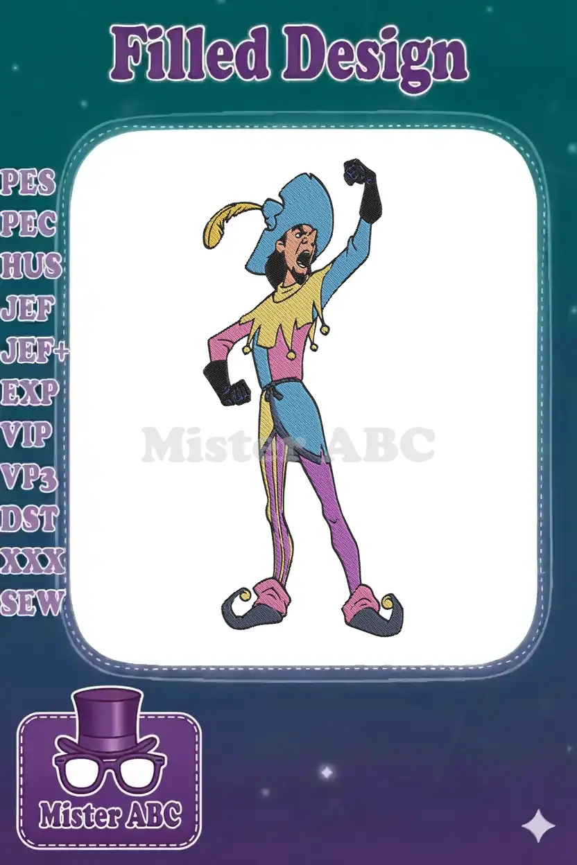 Angry Jester Colorful Costume Medieval Fantasy Embroidery Designs