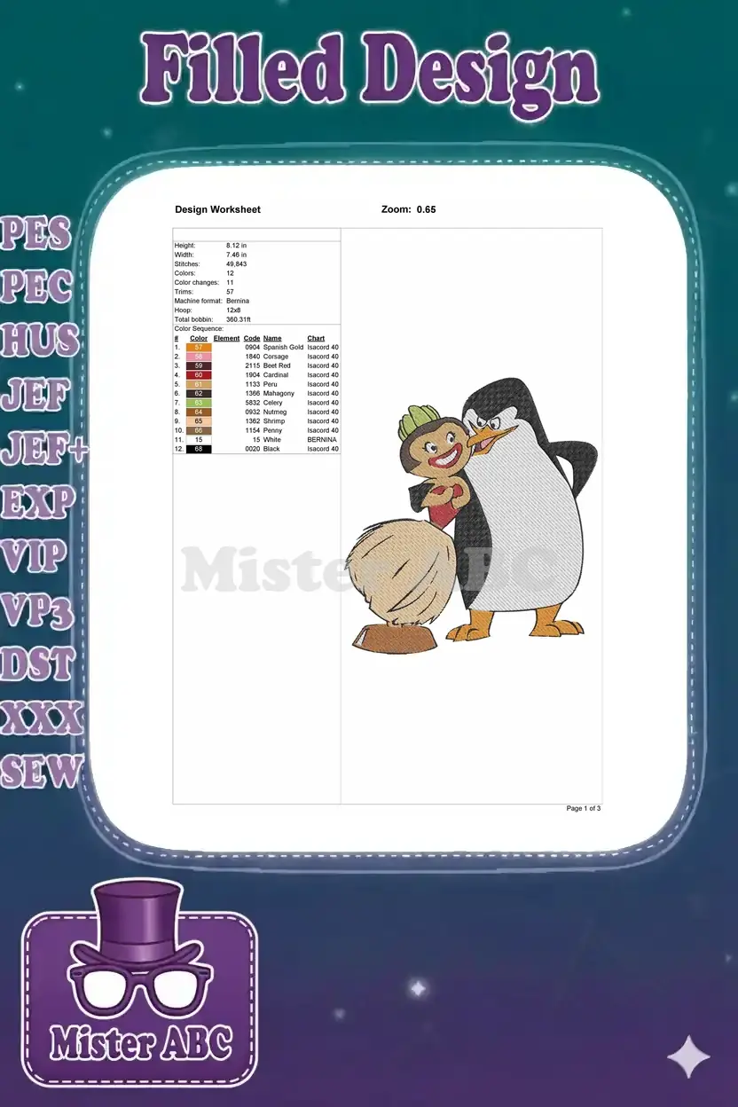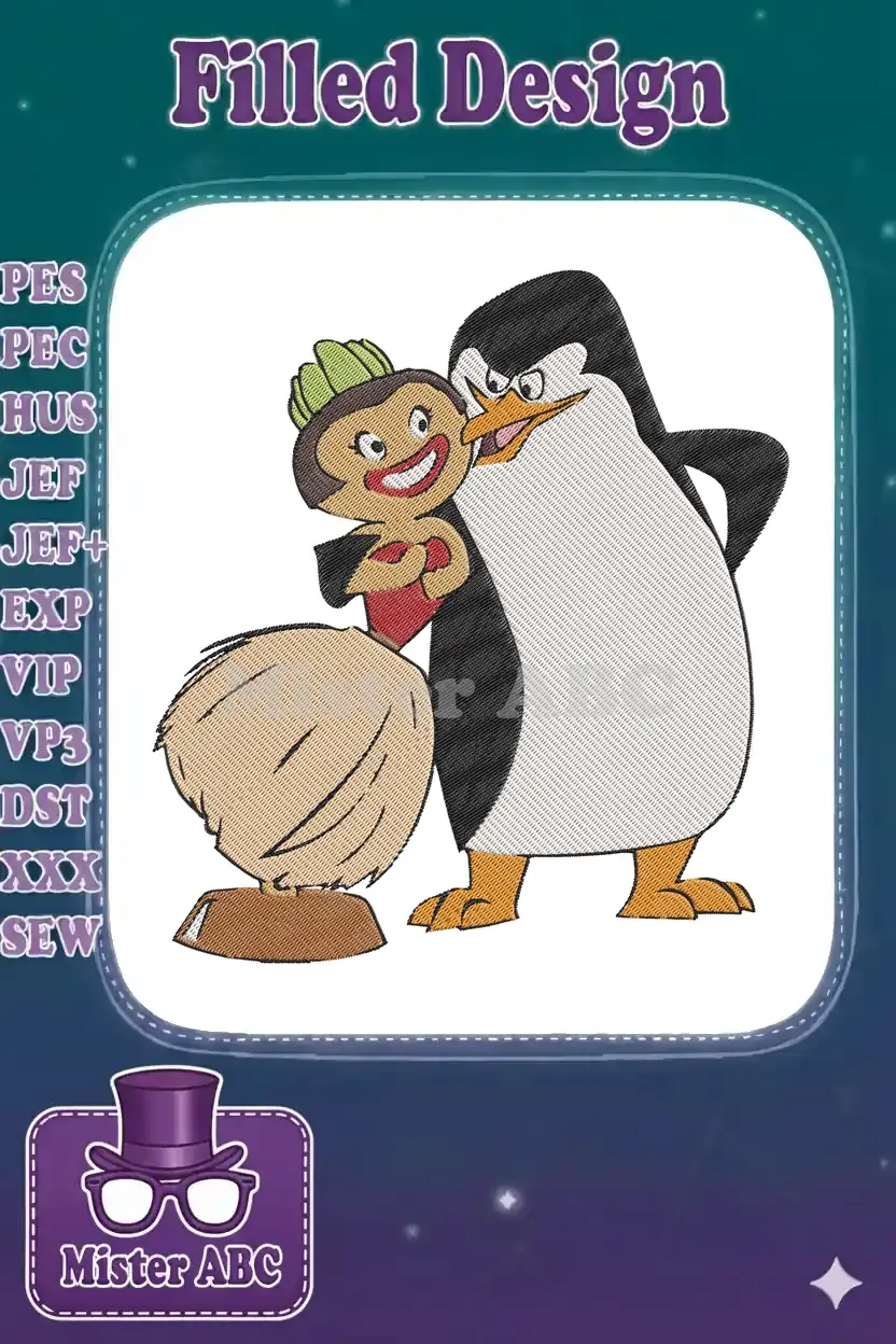 Angry Penguin and Happy Hula Girl Cartoon Embroidery Designs