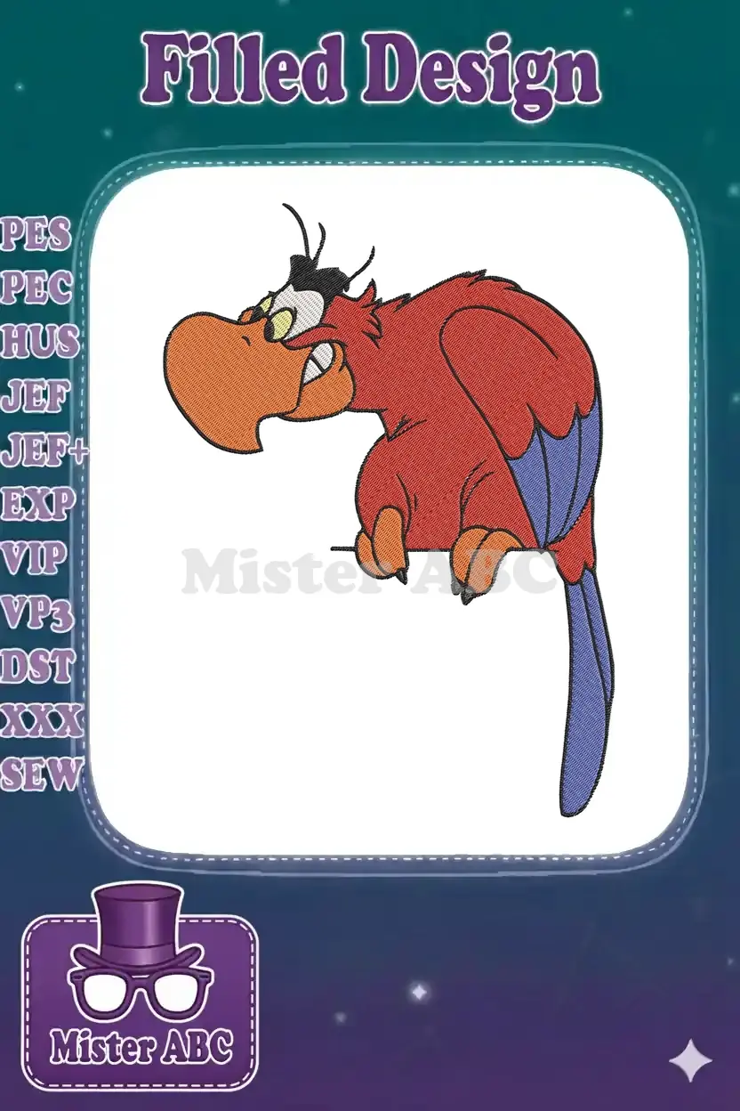 Angry Red Iago Parrot Aladdin Embroidery Designs with Orange Beak