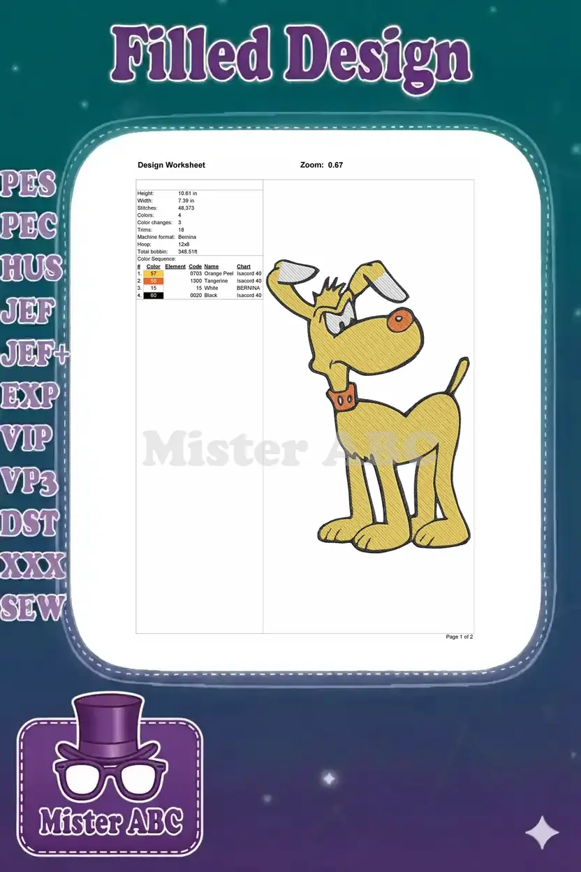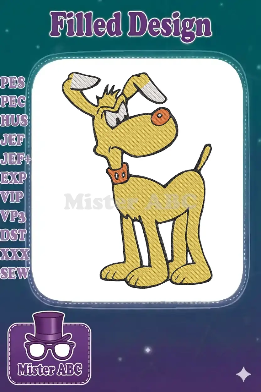 Angry Yellow Cartoon Dog Embroidery Designs for Pet Lovers