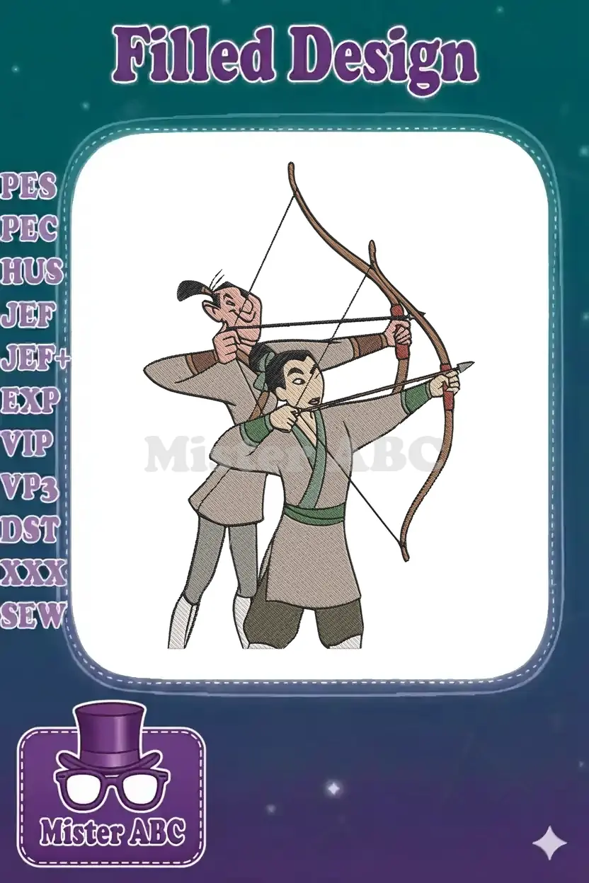Animated Archers Training Archery with Bow and Arrow Embroidery Designs