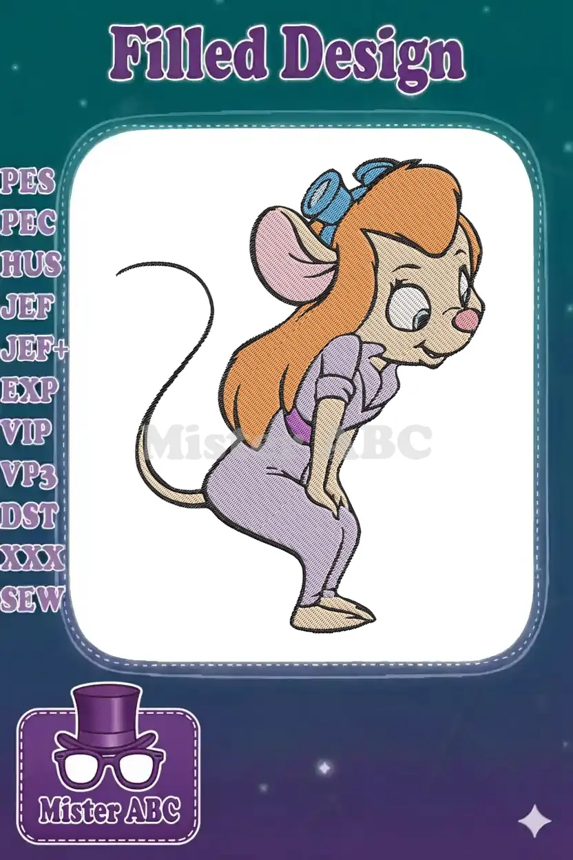 Animated female mouse Gadget Hackwrench purple jumpsuit embroidery designs