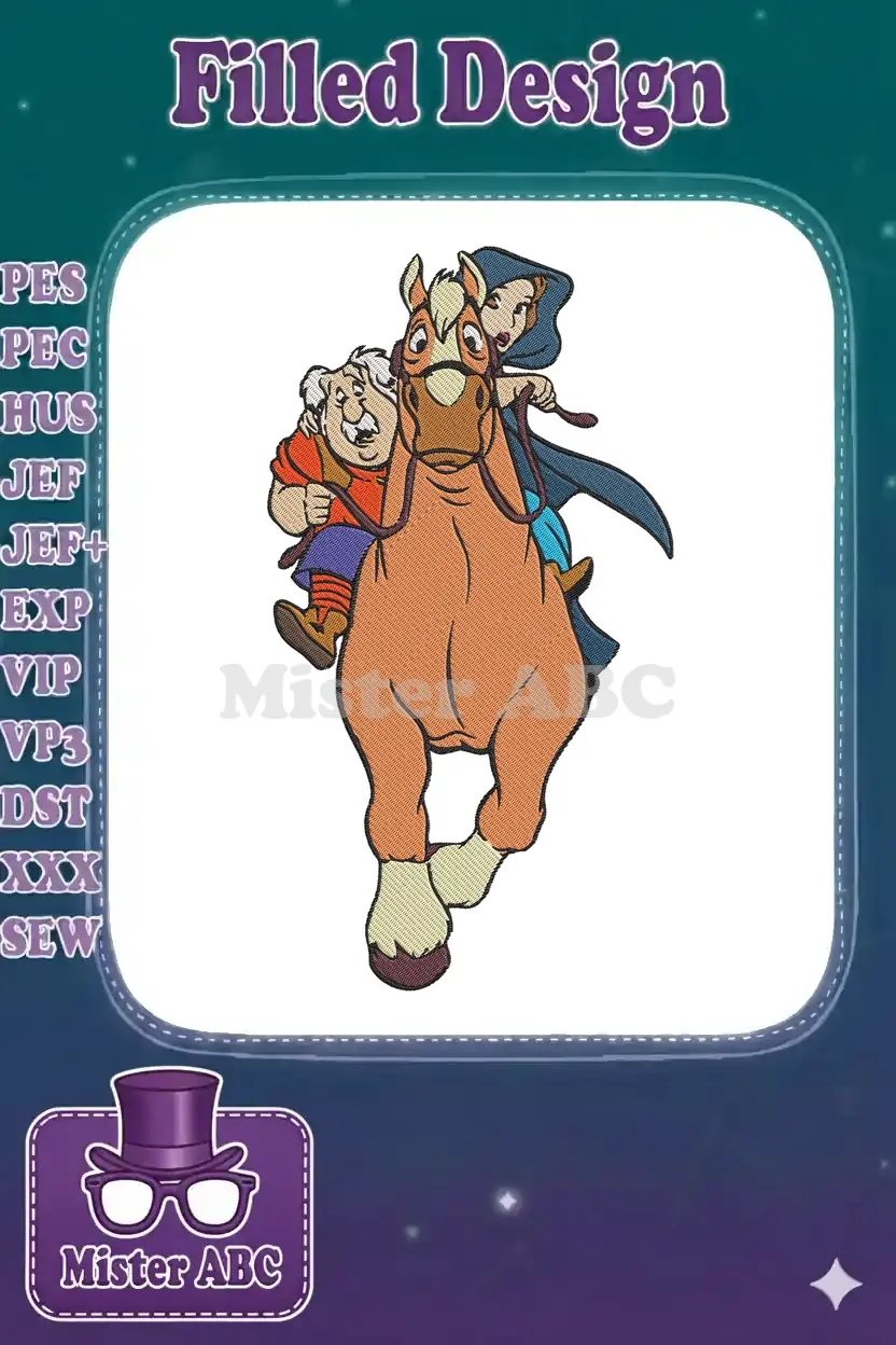 Animated Horse with Woman and Man Riders Embroidery Designs