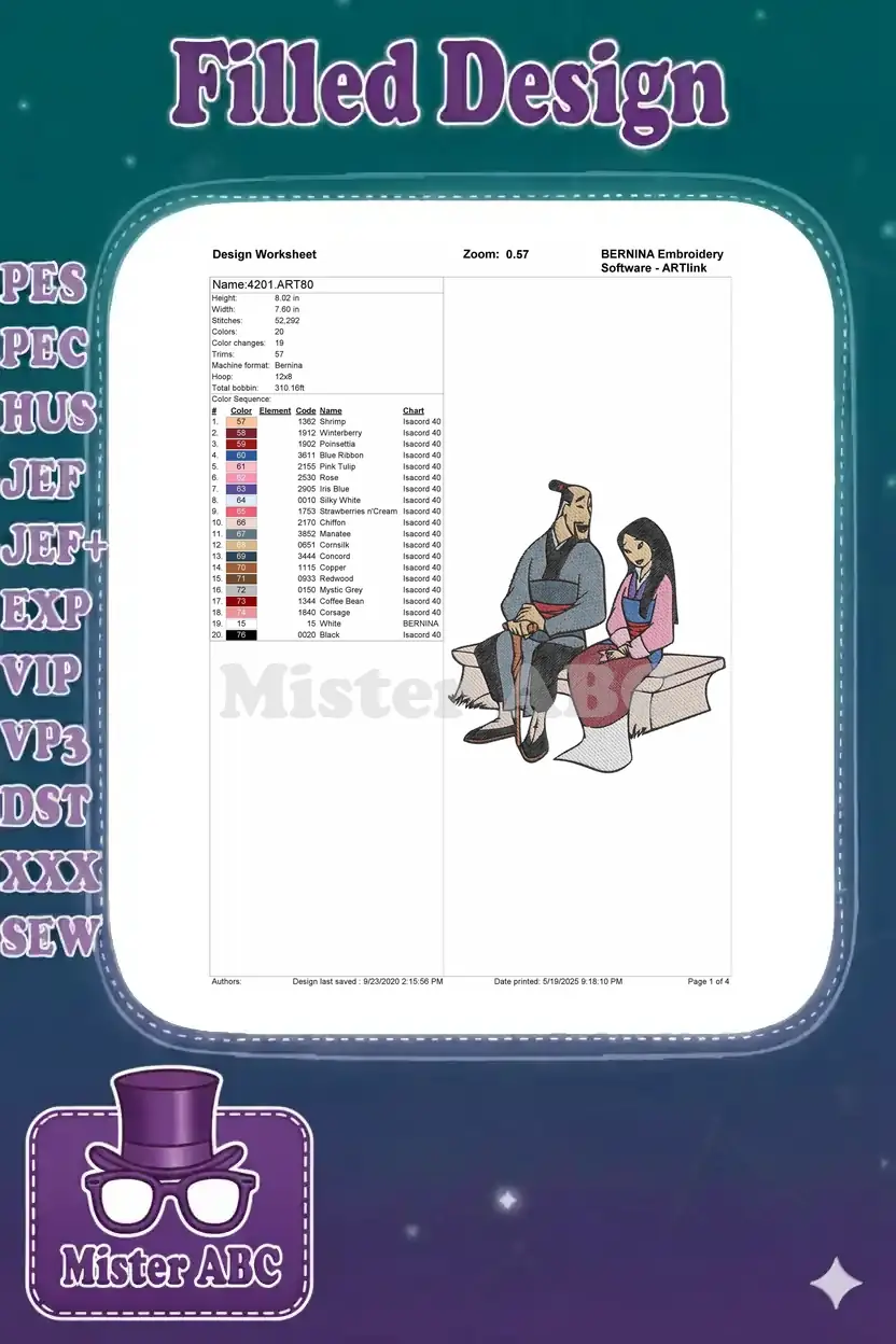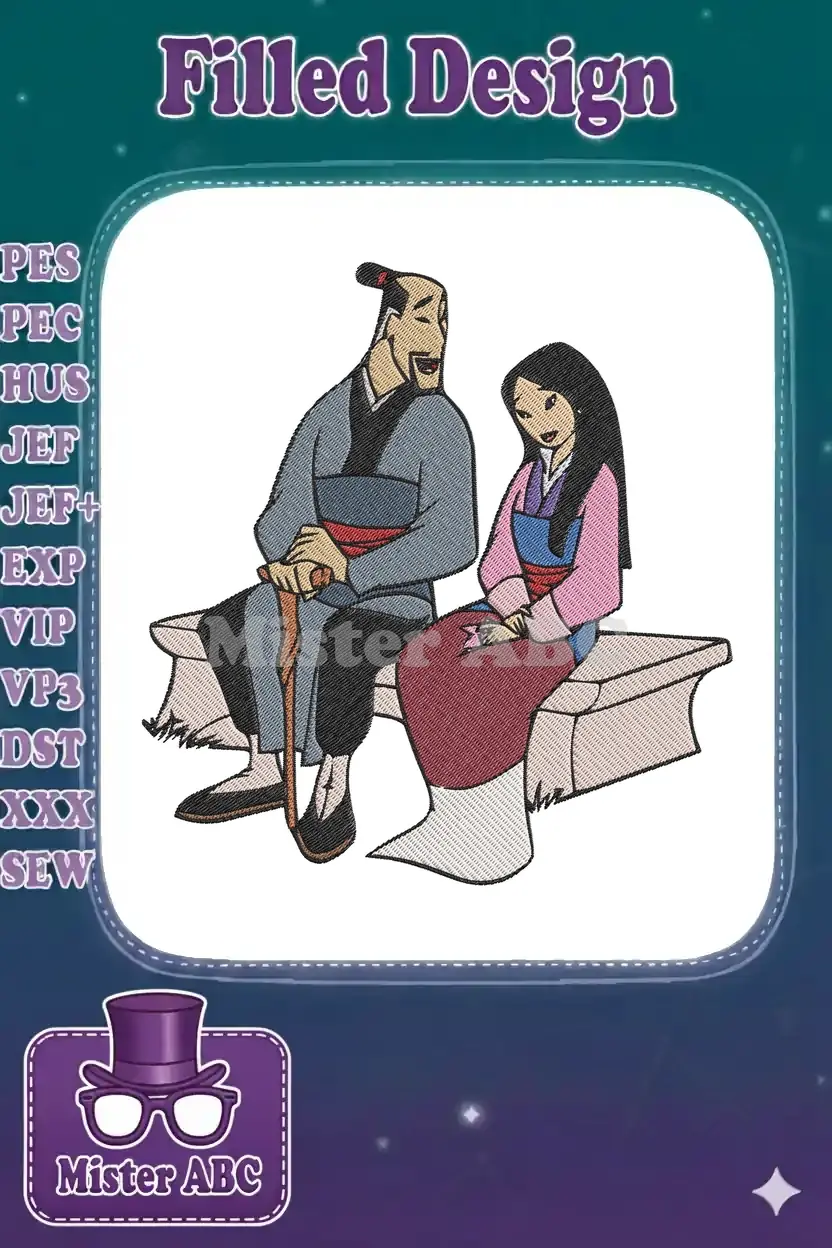 Animated Mulan and Father Family Moment Embroidery Designs - Instant Download Animated Mulan and Father Family Moment Embroidery Designs – Instant Download