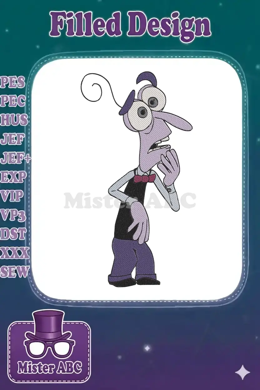 Embrace the charmingly anxious spirit of Fear from Inside Out with this detailed embroidery design. Perfect for fans to add character to any item!