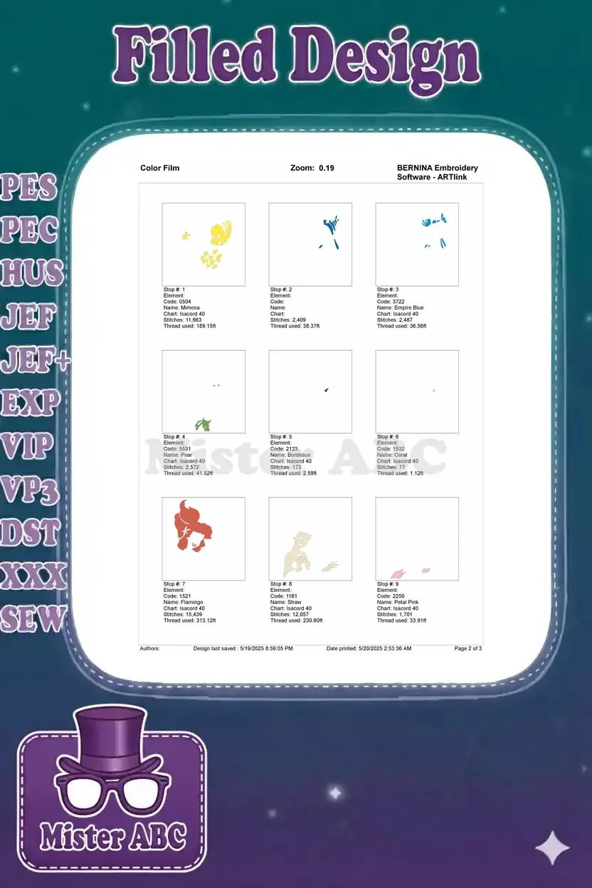 A delightful embroidery design featuring Ariel and Flounder, perfect for adding a touch of undersea magic to any project.